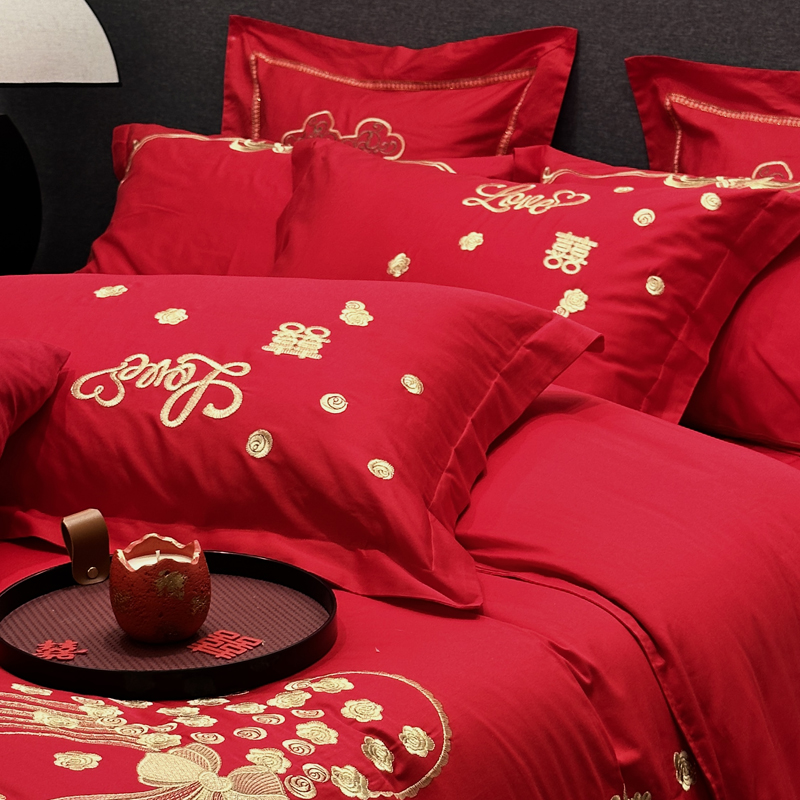 品名:全棉大红刺绣婚庆套件款