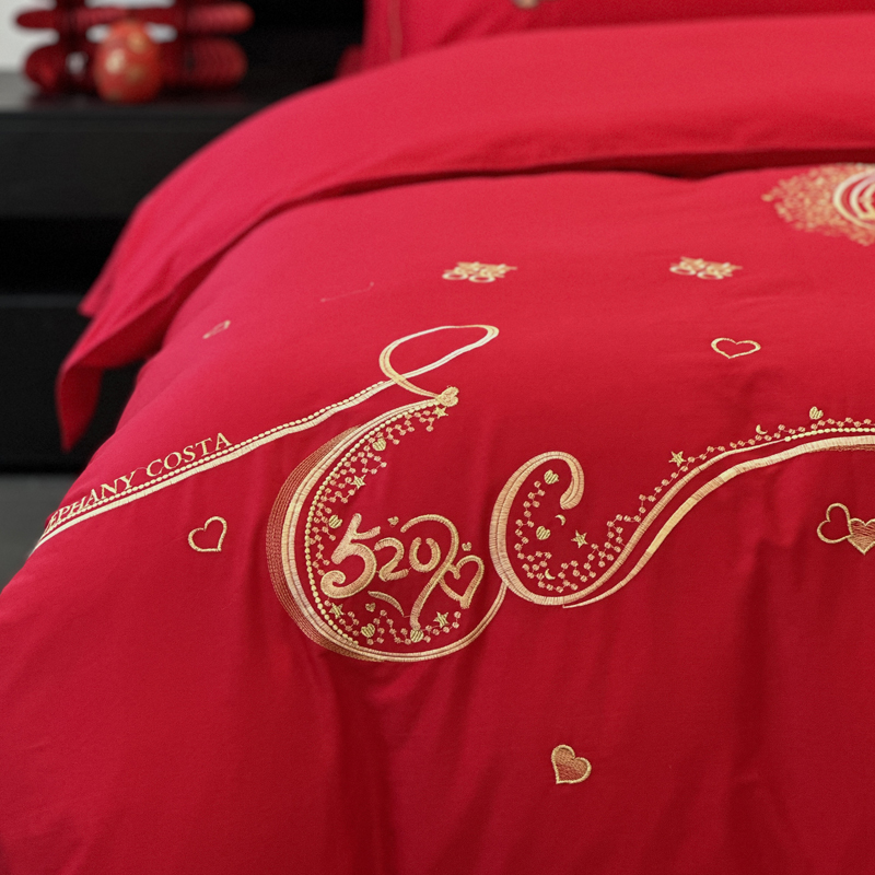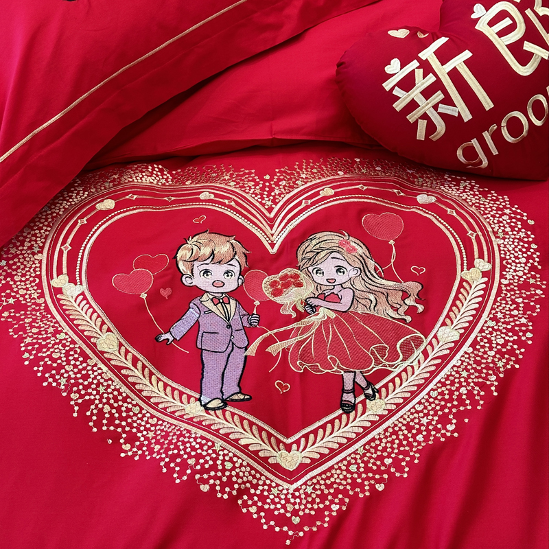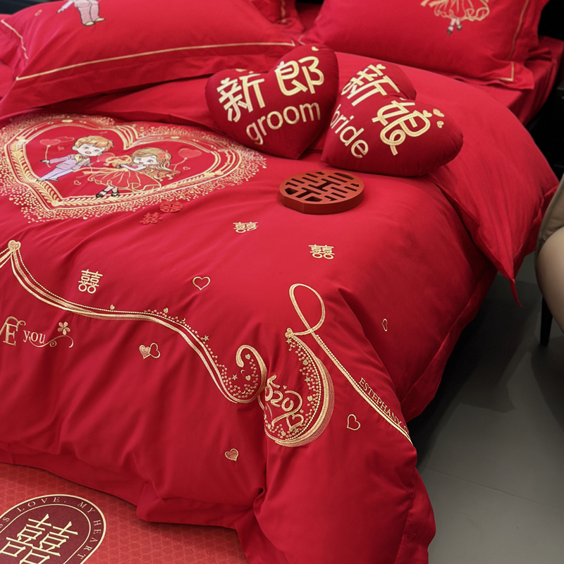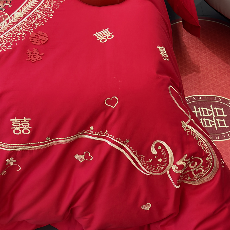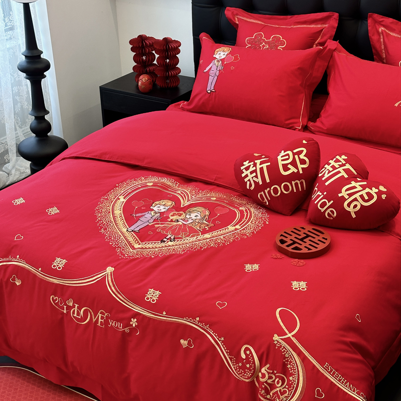 全棉大红刺绣婚庆套件-挚爱