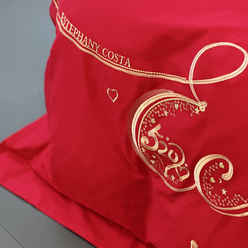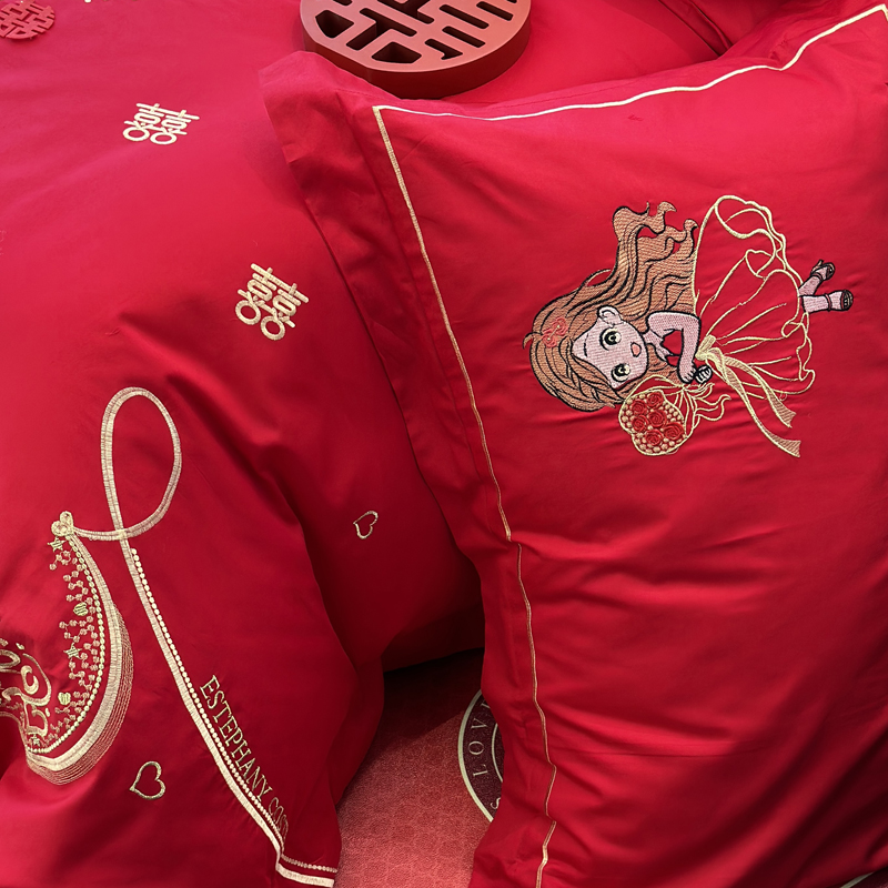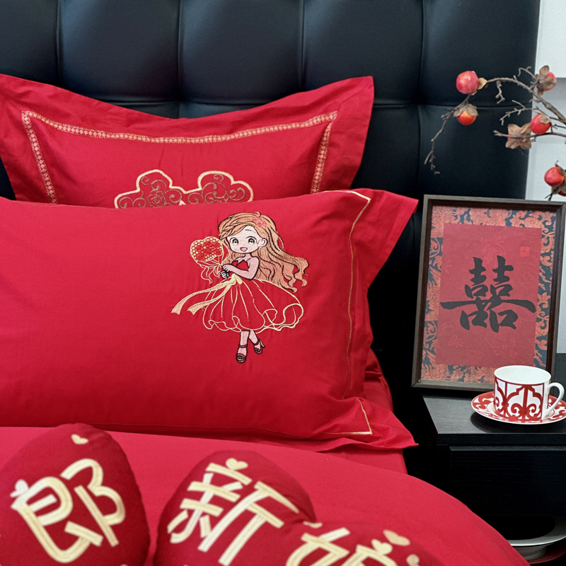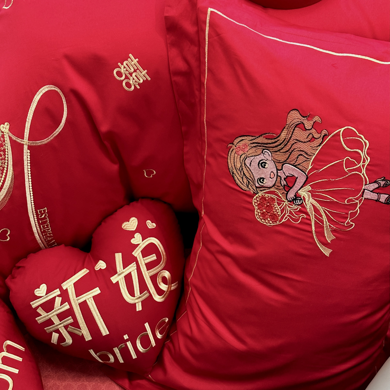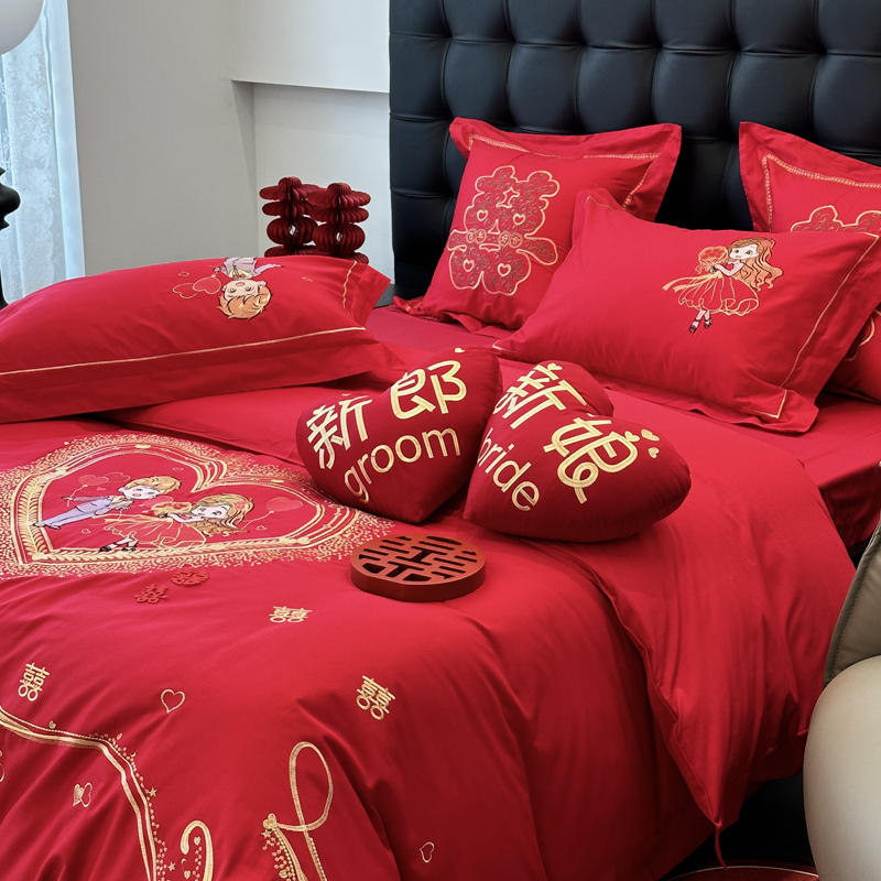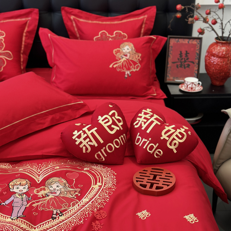 全棉大红刺绣婚庆套件-挚爱