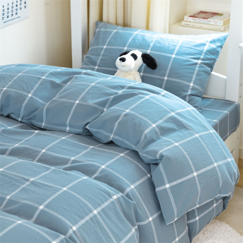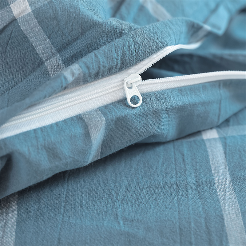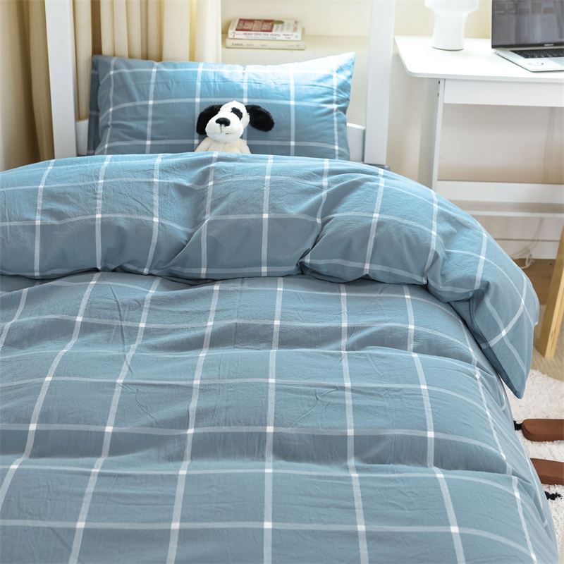 采用优质棉纱,通过色织工艺织造,面料经过特殊水洗处理,触感柔软蓬松,带有自然做旧肌理,越洗越贴肤。床品透气吸湿,四季适用。经典格纹/条纹设计简约百搭,轻微褶皱感营造慵懒氛围。