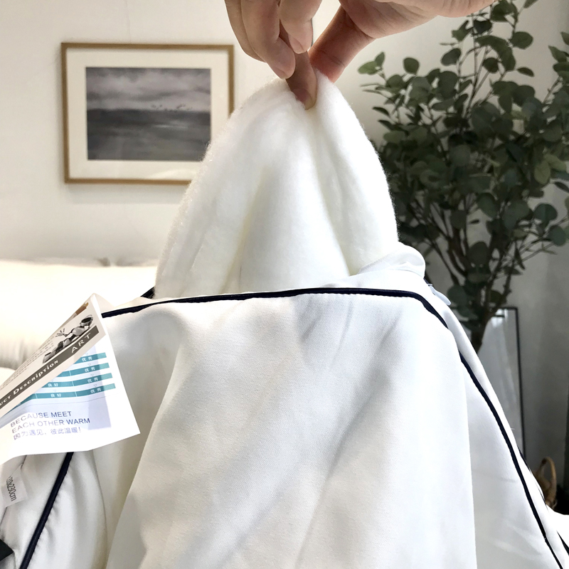 每条被子都有检测口,能让你看到里面的填充物,每条都配有包装和吊牌!