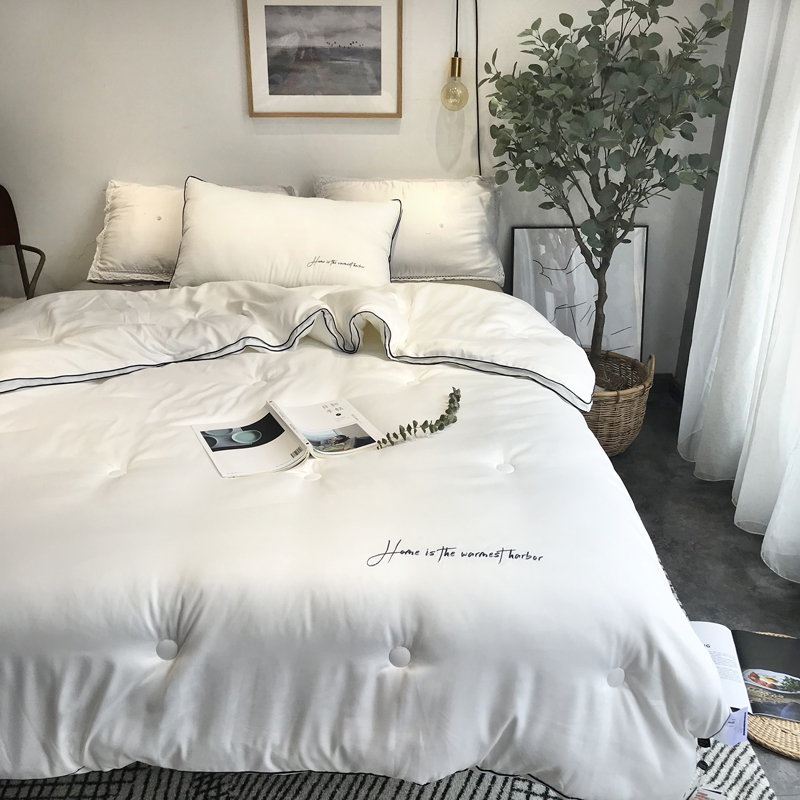 什么样的冬被盖在身上才最暖和?首先一定要贴身,有垂感。很多冬被,看上去抛抛的,很厚实,其实这种被子是最不保暖的,盖在身上像盖报纸,不服帖,肩膀上都是空的,空气都钻进被窝里,自然不暖和。里面的填充物没用多久也就聚团了。