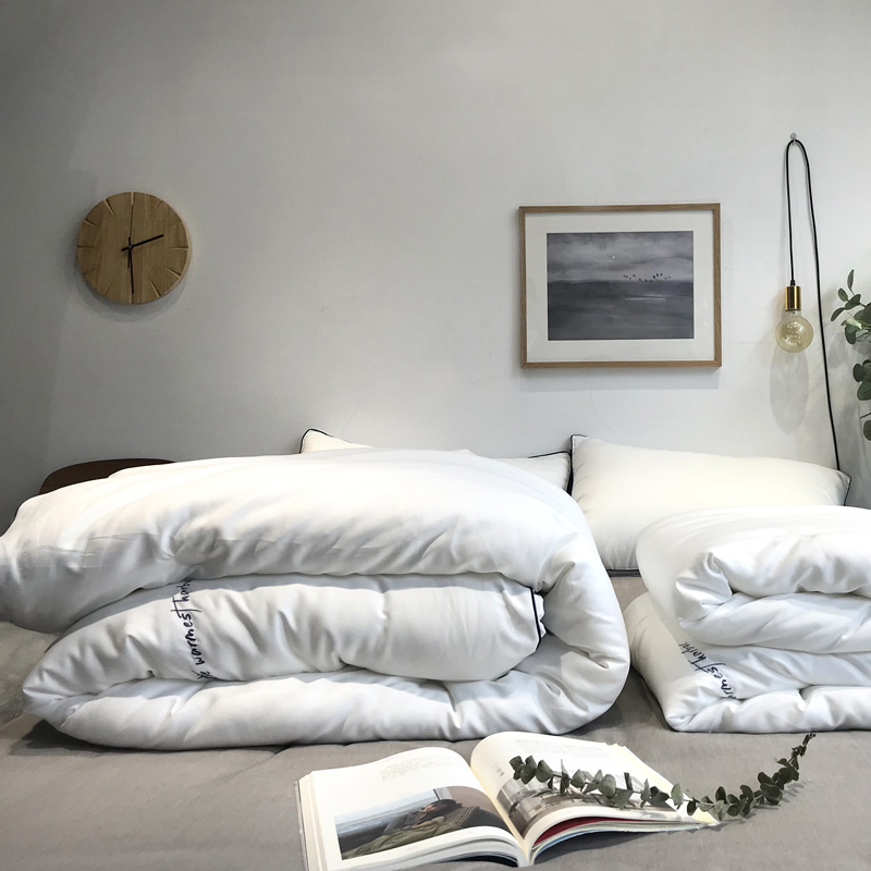 我们这款面料配上这个填充羽物,垂感好,无论你怎么翻身我们的被子都会贴在你身上,保暖效果好!抗菌防螨云绒被,冬天一定要有一条这样的暖心的冬被。