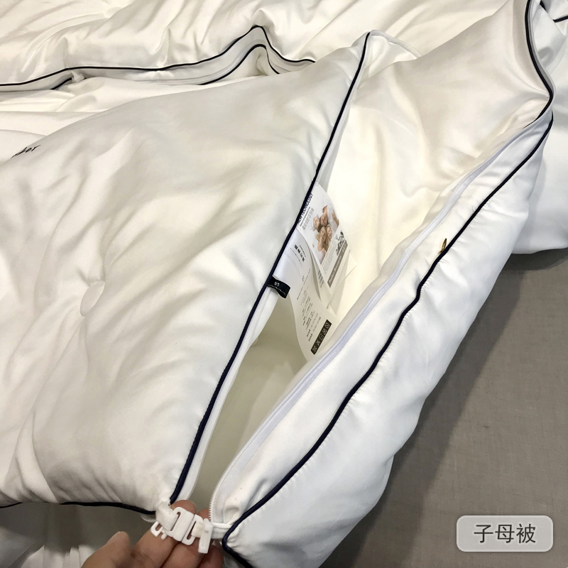 拉链款二合一子母被,加长定制无痕流畅拉链更稳固,更贴心,更温暖,更方便哦!春夏用子被,初秋冬用母被,大冬天就合起来用啦,合起来12斤左右啊是不是非常人性化呢?