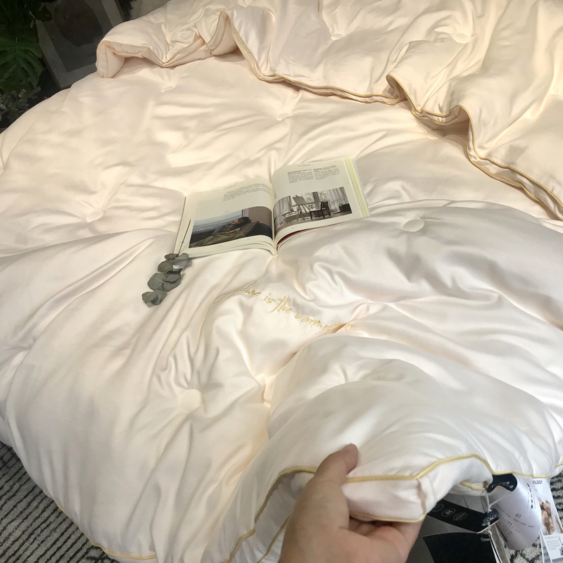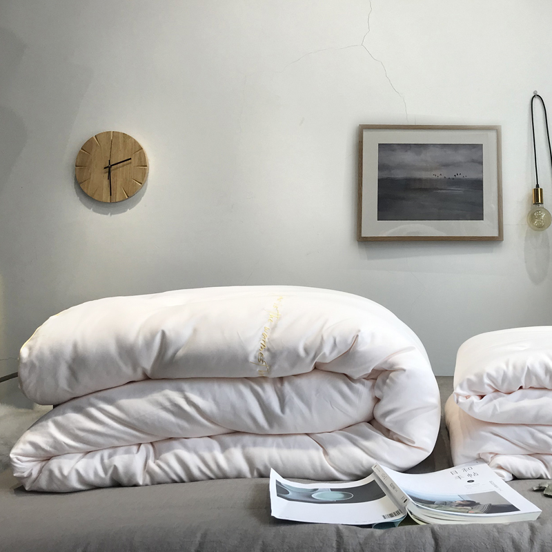 我们这款面料配上这个填充羽物,垂感好,无论你怎么翻身我们的被子都会贴在你身上,保暖效果好!抗菌防螨云绒被,冬天一定要有一条这样的暖心的冬被。