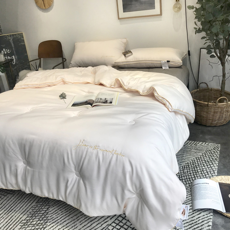 什么样的冬被盖在身上才最暖和?首先一定要贴身,有垂感。很多冬被,看上去抛抛的,很厚实,其实这种被子是最不保暖的,盖在身上像盖报纸,不服帖,肩膀上都是空的,空气都钻进被窝里,自然不暖和。里面的填充物没用多久也就聚团了。
