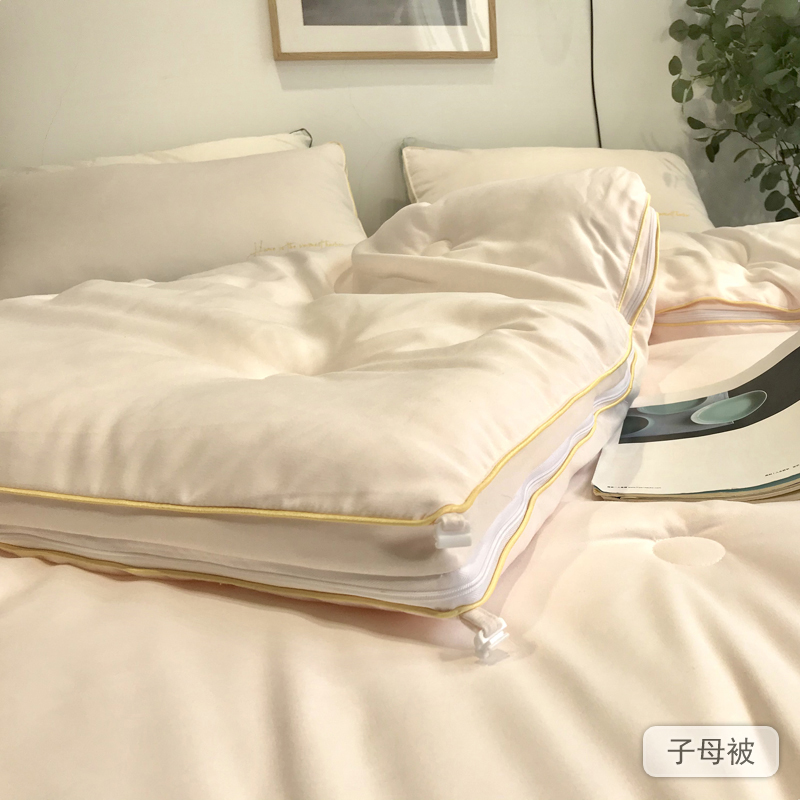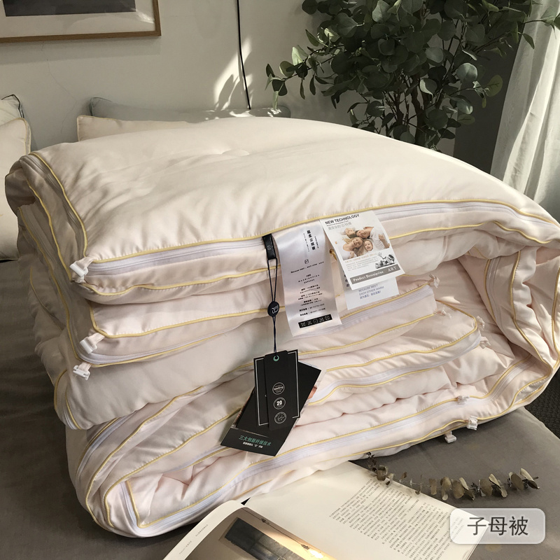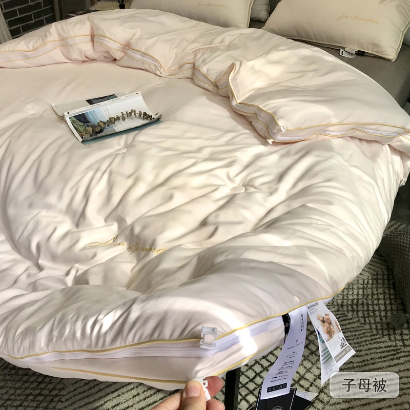 拉链款二合一子母被,加长定制无痕流畅拉链更稳固,更贴心,更温暖,更方便哦!春夏用子被,初秋冬用母被,大冬天就合起来用啦,合起来12斤左右啊是不是非常人性化呢?