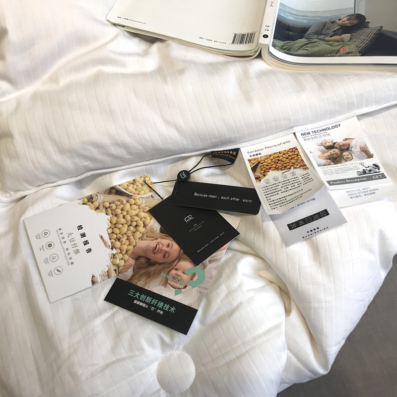 我们这款暖芯的大豆被具有羊绒的手感,蚕丝的光泽,羊毛的保暖性,棉的吸湿性。在科学的配比研究下,大豆被只有大豆含量在20%,超细羽丝在80%的黄金配比下,才能达到好的效果!我们经过科技技术达到抗菌阻螨的效果,拒绝螨虫陪睡,让你每天都能睡“美容觉”另外,每条被子都有检测口哦,你清楚的看到填充物,大豆蛋白的棉呈米黄色,真假一看就知道,每条都配有包装和吊牌,最重要的是每条被子都附有检测报告哦,让你用的舒心,更放心!