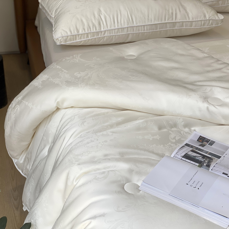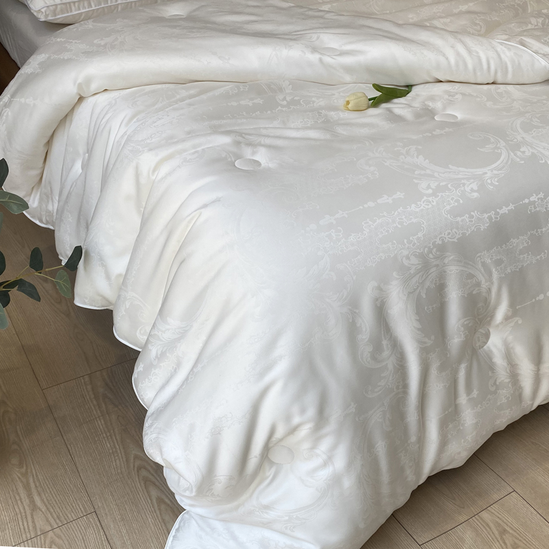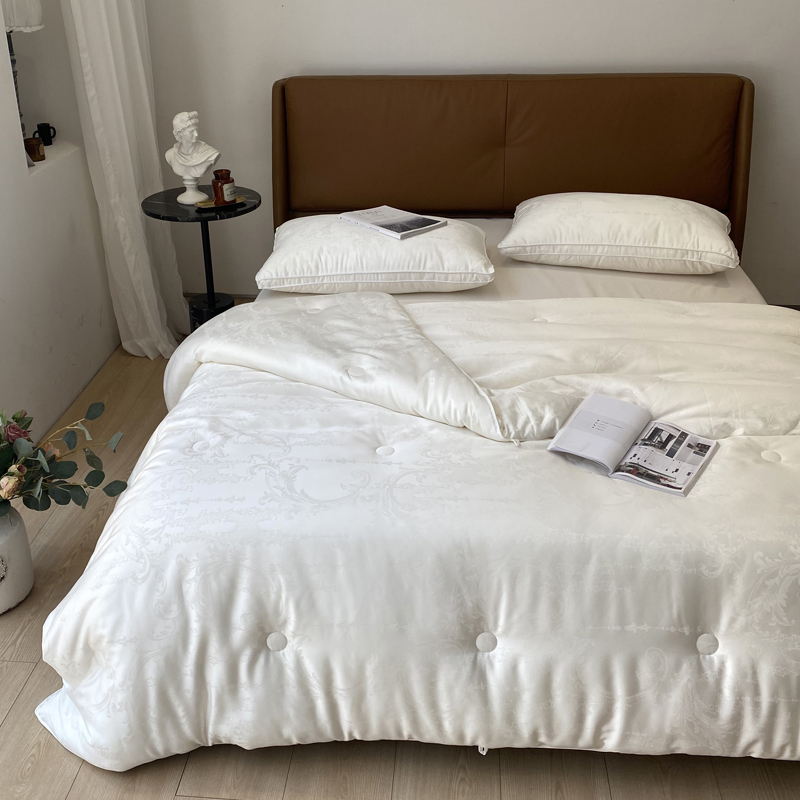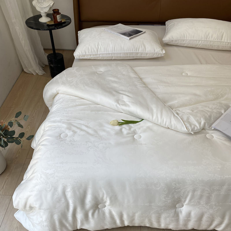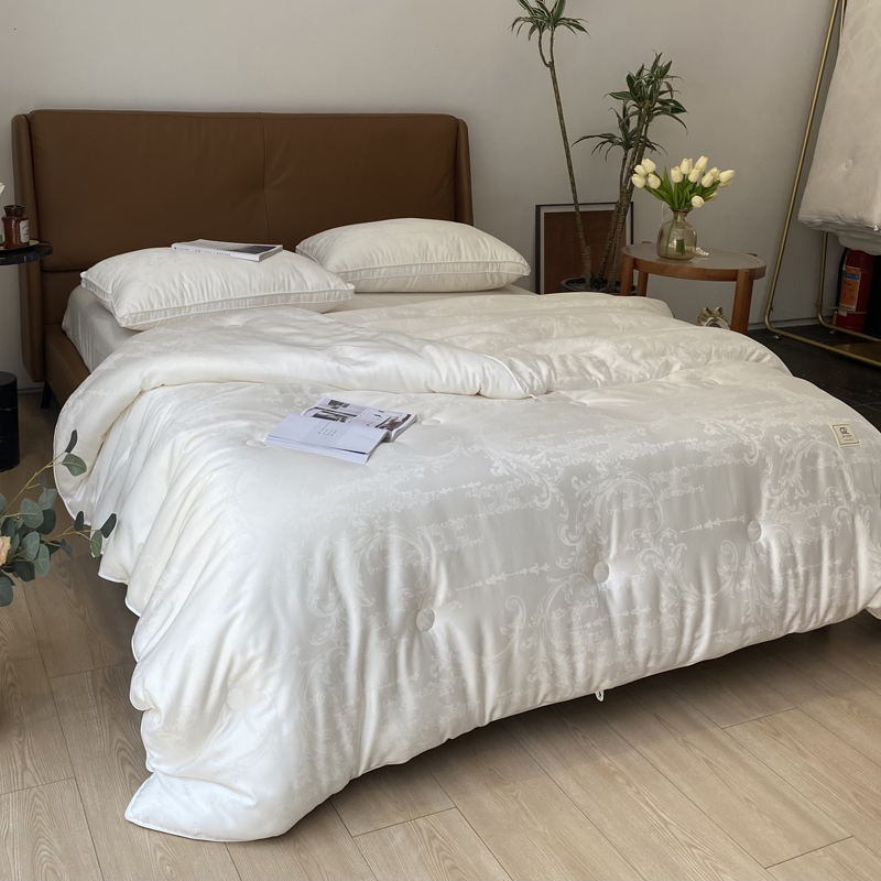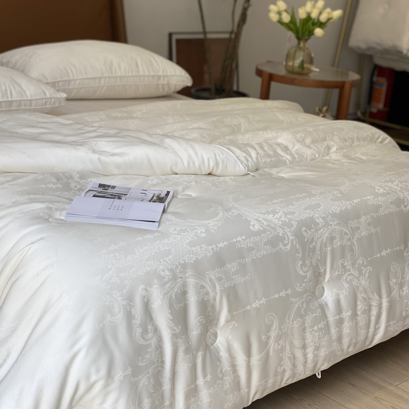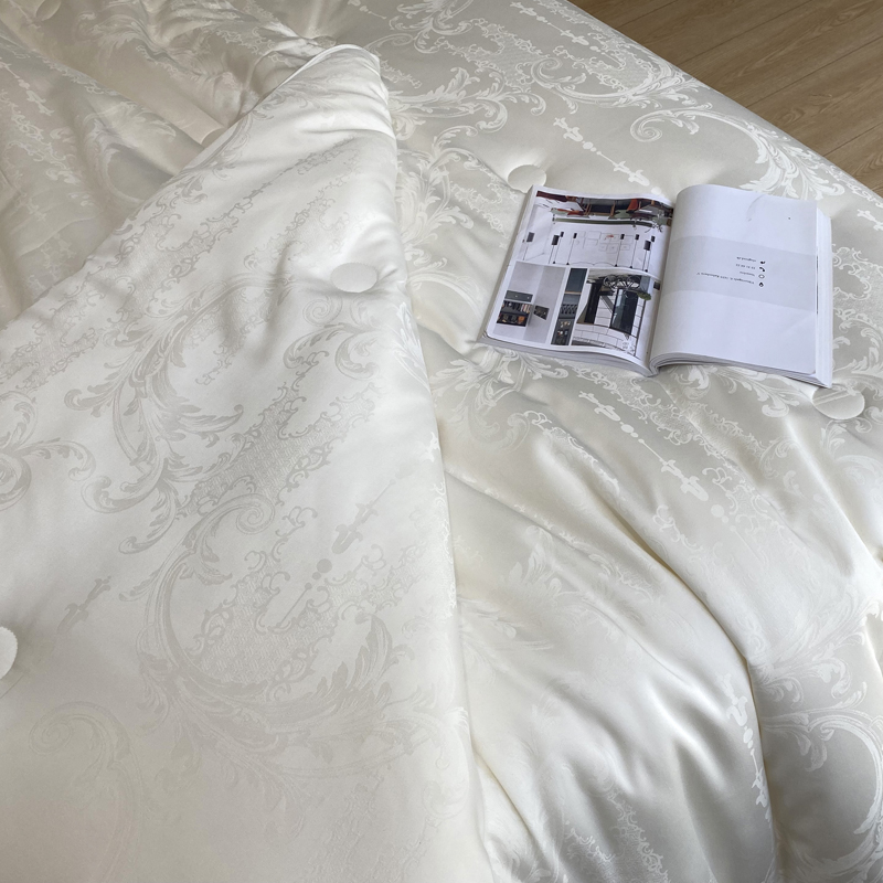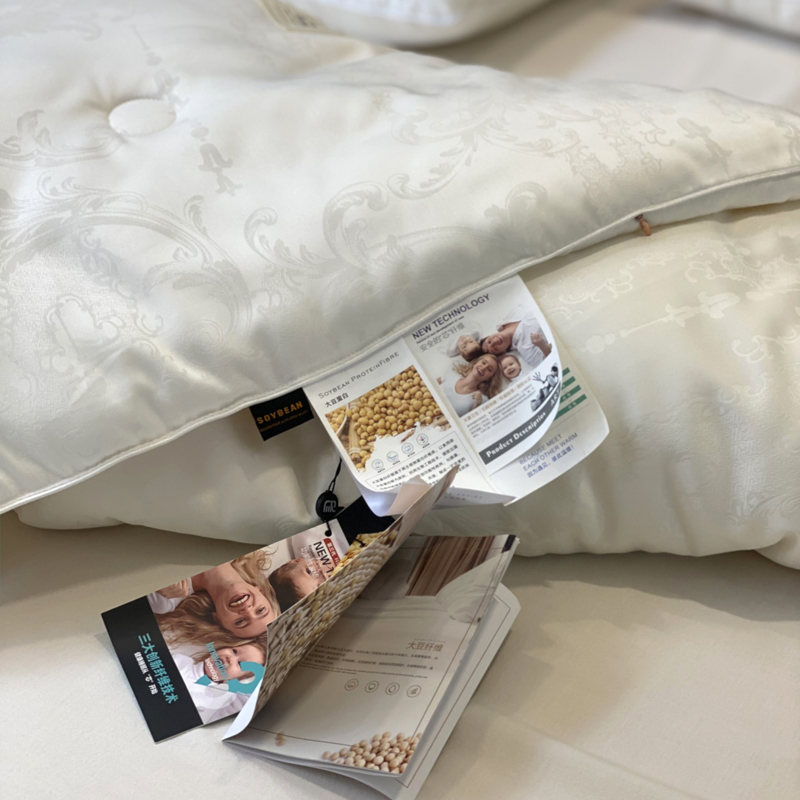 这是一款集舒适睡眠与优雅美学于一体的高端被芯。它融合了大豆蛋白纤维的柔软贴肤、现代抗菌科技的呵护、以及精致木本提花工艺带来的视觉享受,为您打造一个舒适、安心、有格调的睡眠环境。