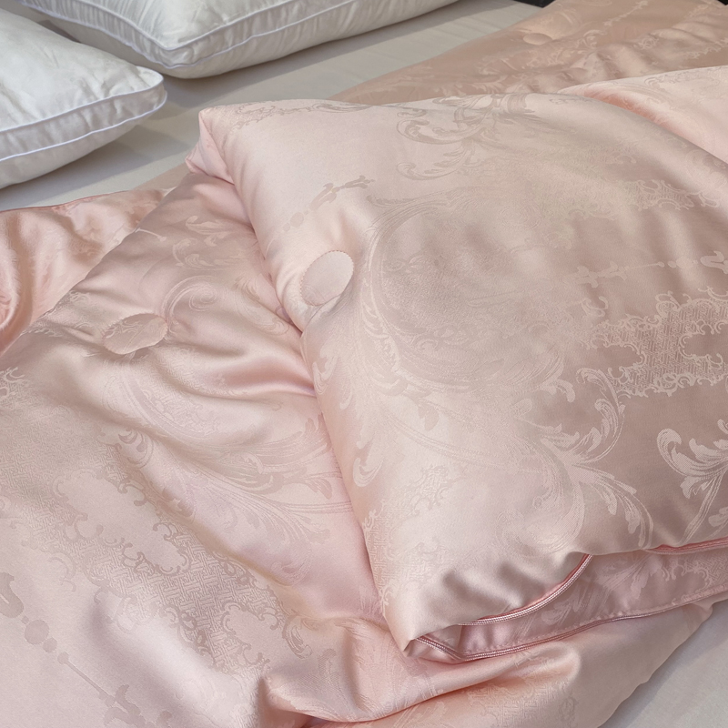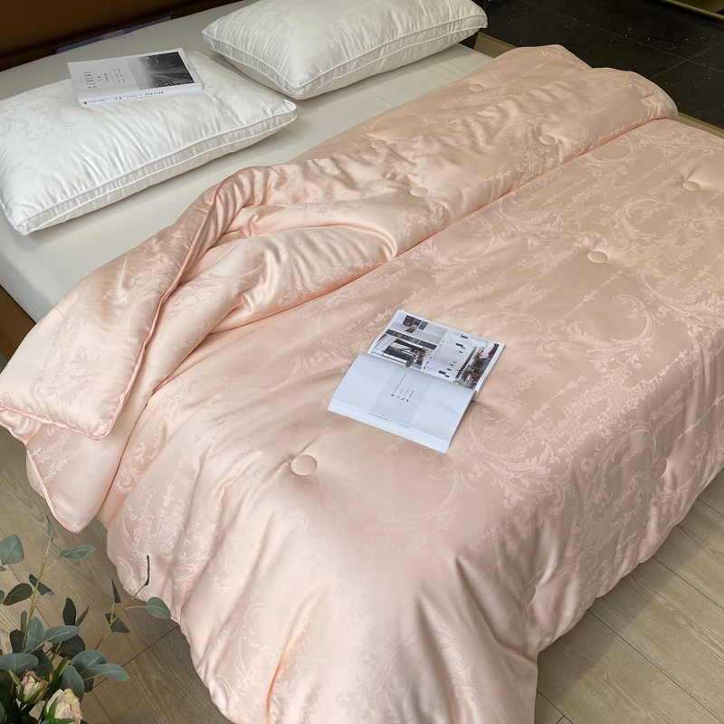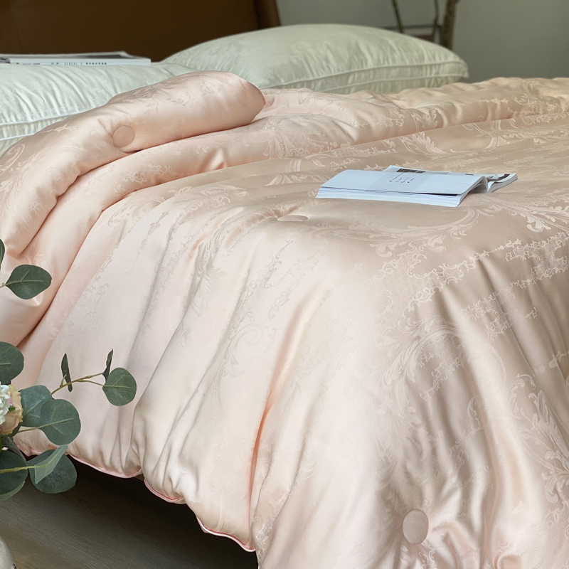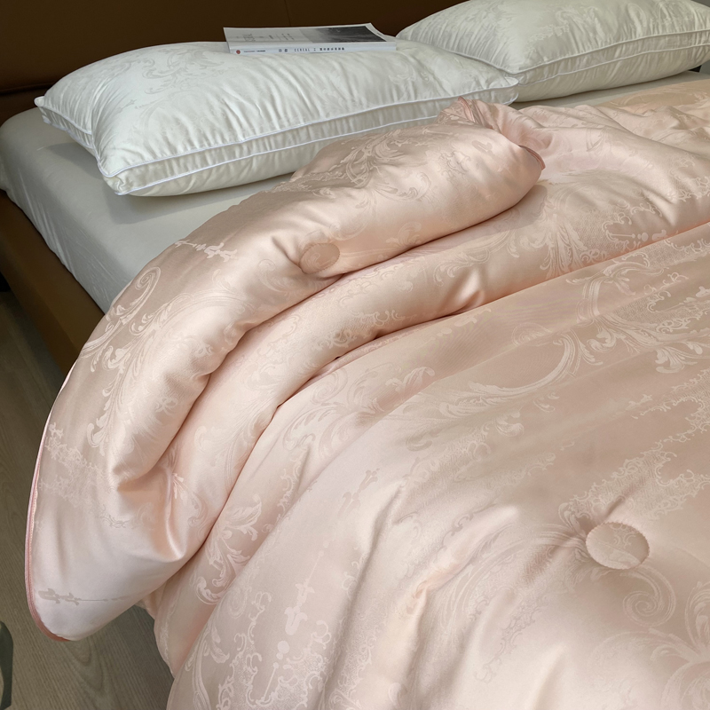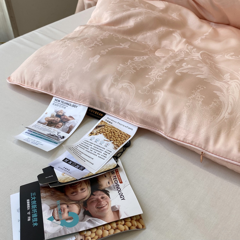 这是一款集舒适睡眠与优雅美学于一体的高端被芯。它融合了大豆蛋白纤维的柔软贴肤、现代抗菌科技的呵护、以及精致木本提花工艺带来的视觉享受,为您打造一个舒适、安心、有格调的睡眠环境。