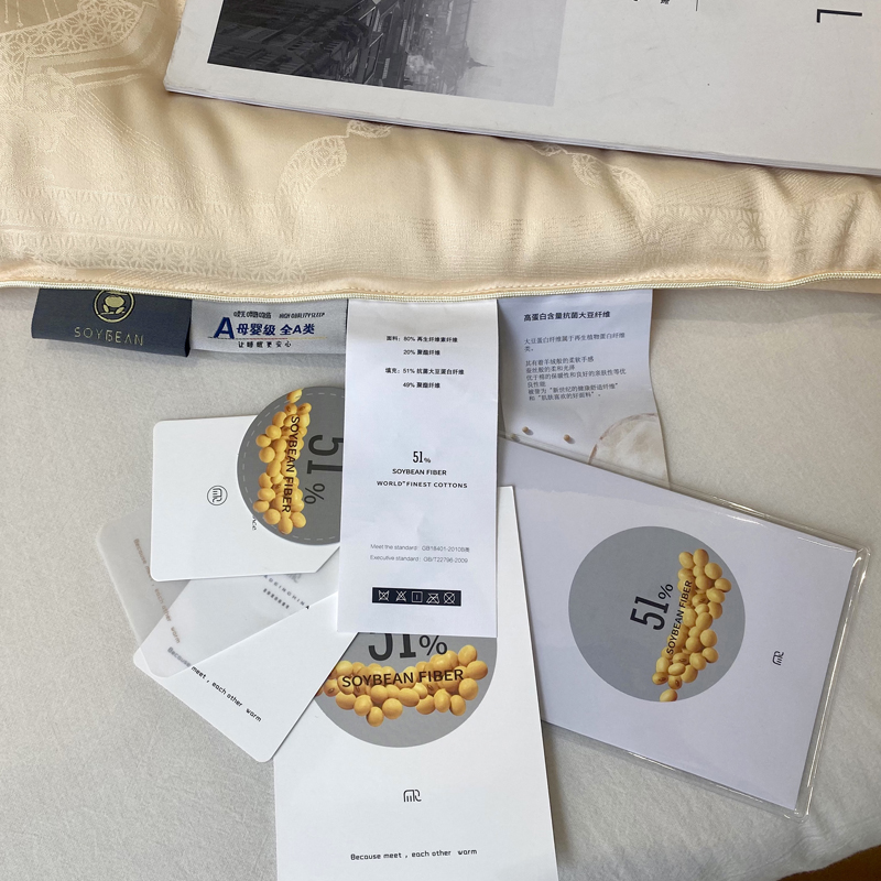手感完全媲美蚕丝被,我们用的都是大豆纤维的发明者李官齐大豆纤维,经过多道工序科研,再生大豆蛋白纤维黄金科学配比,我们改用了之前20%大豆黄金配比含量,成功升级为51%大豆含量,手感更好,不会因为大豆含量增多而让舒适感变差!大豆纤维富含多种氨基酸,另外,51%大豆纤维填充运用3D抗菌活性导入技术,24小时抗菌防护,使用舒适,助力深度睡眠!