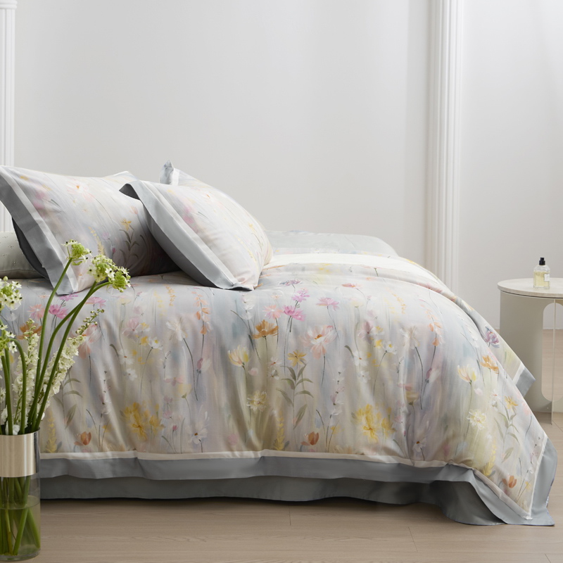 甄选优质长绒棉,以60支高密工艺织就。面料触感柔滑若缎,透气贴肤,给予一夜安眠。精致印花设计,图案生动时尚,为卧室注入艺术美感与灵动气息,轻松搭配各式卧房风格。细节处匠心缝制,为您带来奢华而舒适的居家睡眠体验。