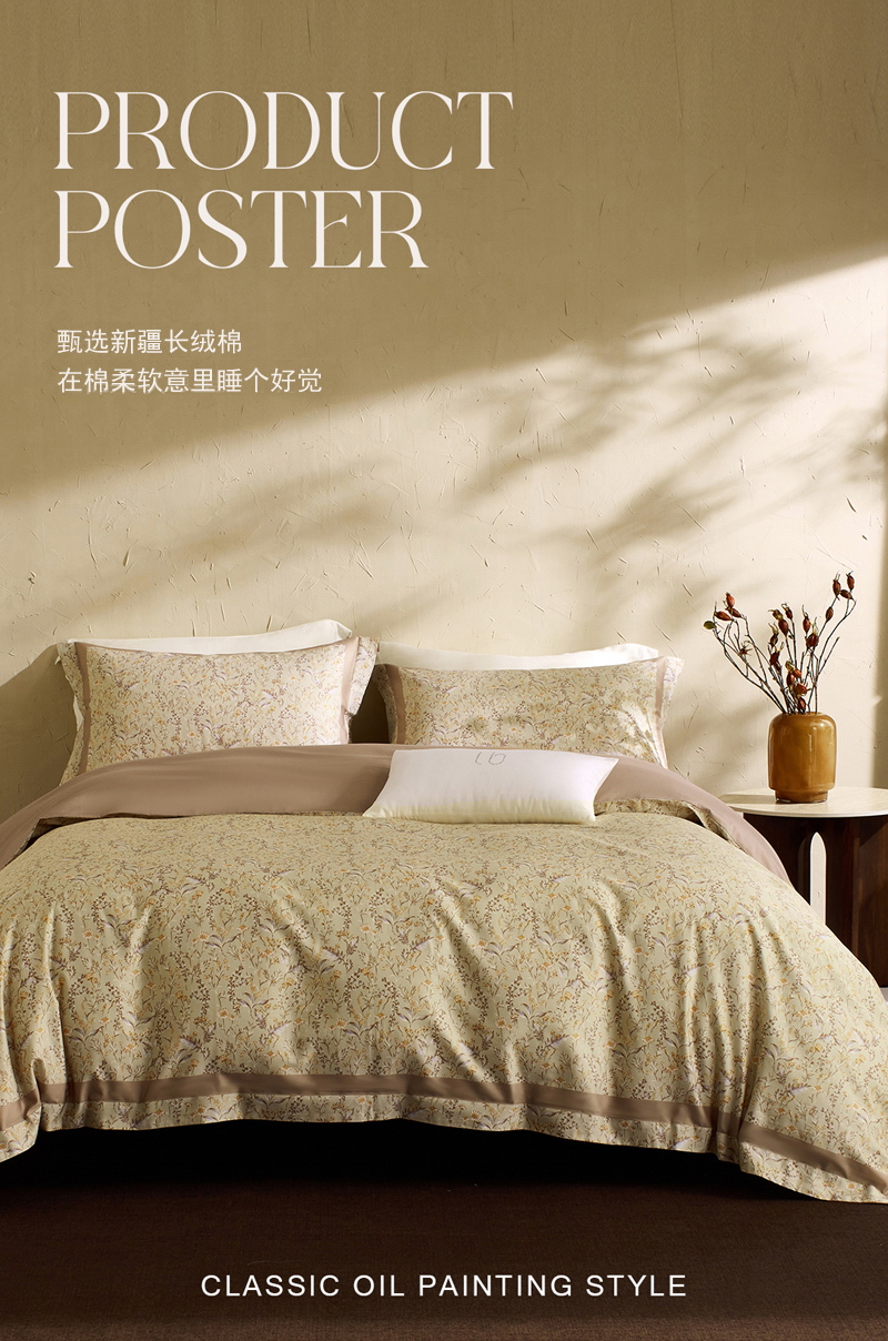 甄选优质长绒棉,以60支高密工艺织就。面料触感柔滑若缎,透气贴肤,给予一夜安眠。精致印花设计,图案生动时尚,为卧室注入艺术美感与灵动气息,轻松搭配各式卧房风格。细节处匠心缝制,为您带来奢华而舒适的居家睡眠体验。