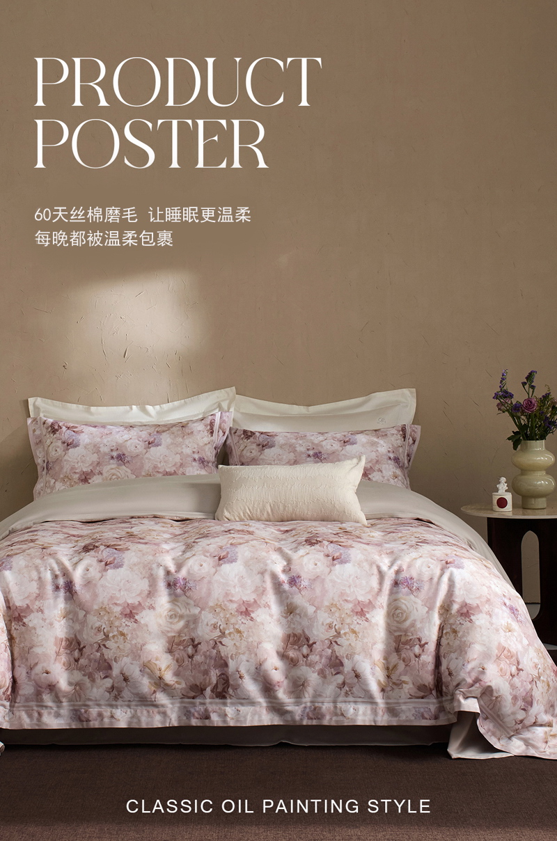 甄选优质天丝棉面料。面料触感柔滑若缎,透气贴肤,给予一夜安眠。精致印花设计,图案生动时尚,为卧室注入艺术美感与灵动气息,轻松搭配各式卧房风格。细节处匠心缝制,为您带来奢华而舒适的居家睡眠体验。
