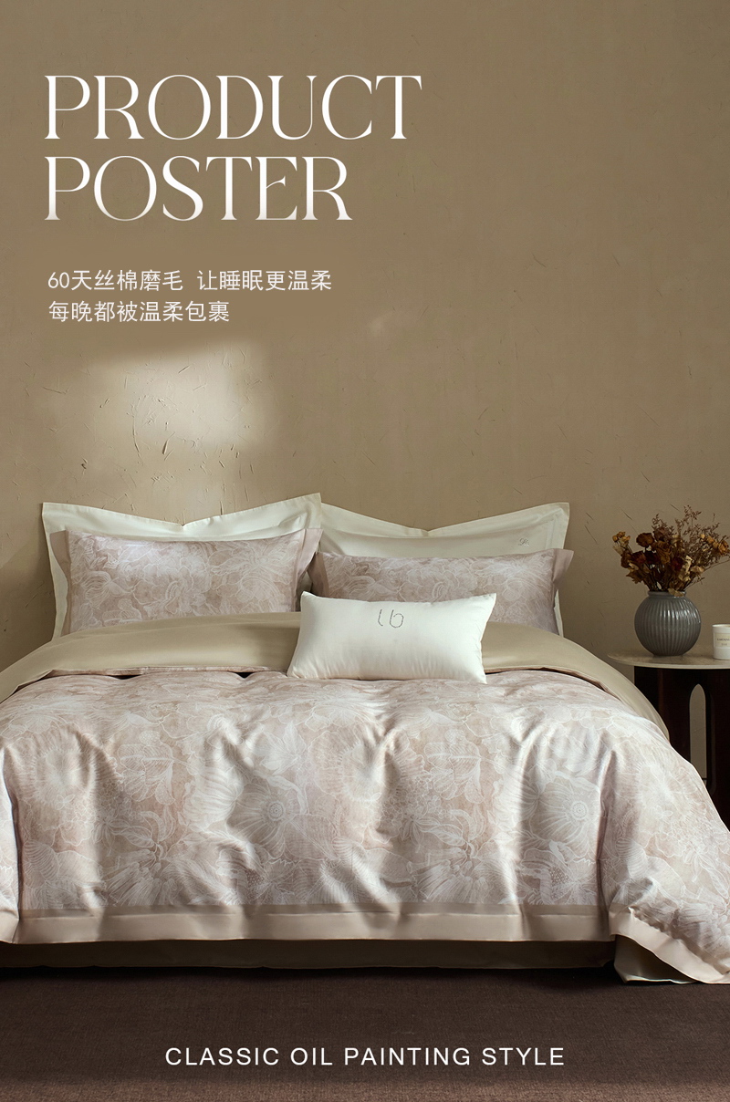 甄选优质天丝棉面料。面料触感柔滑若缎,透气贴肤,给予一夜安眠。精致印花设计,图案生动时尚,为卧室注入艺术美感与灵动气息,轻松搭配各式卧房风格。细节处匠心缝制,为您带来奢华而舒适的居家睡眠体验。
