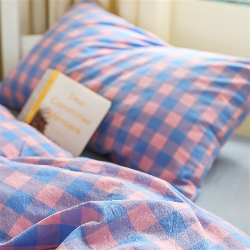 采用优质棉纱,通过色织工艺织造,面料经过特殊水洗处理,触感柔软蓬松,带有自然做旧肌理,越洗越贴肤。床品透气吸湿,四季适用。经典格纹/条纹设计简约百搭,轻微褶皱感营造慵懒氛围。