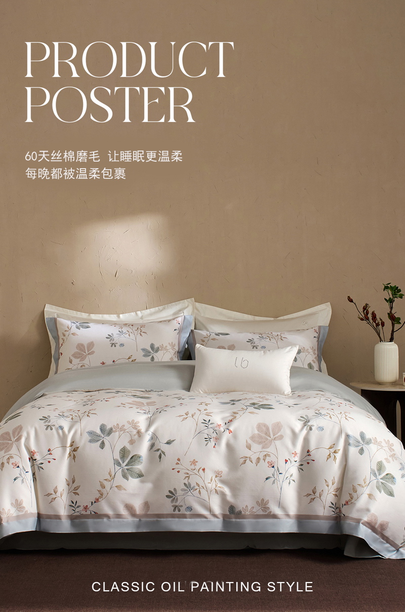 甄选优质天丝棉面料。面料触感柔滑若缎,透气贴肤,给予一夜安眠。精致印花设计,图案生动时尚,为卧室注入艺术美感与灵动气息,轻松搭配各式卧房风格。细节处匠心缝制,为您带来奢华而舒适的居家睡眠体验。