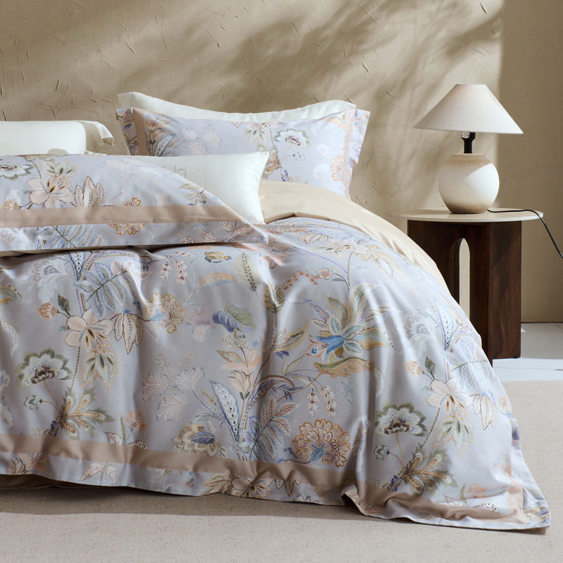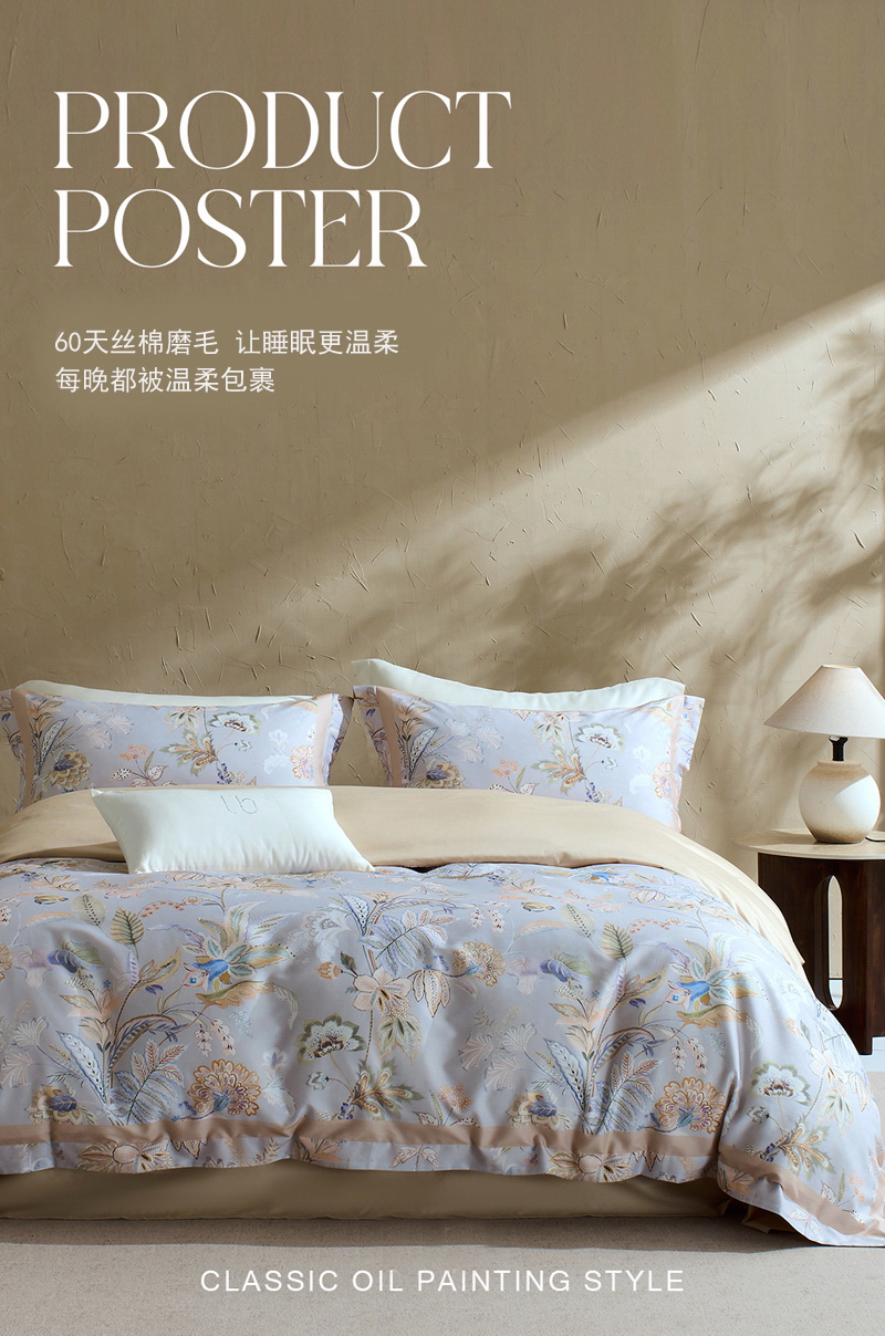 甄选优质天丝棉面料。面料触感柔滑若缎,透气贴肤,给予一夜安眠。精致印花设计,图案生动时尚,为卧室注入艺术美感与灵动气息,轻松搭配各式卧房风格。细节处匠心缝制,为您带来奢华而舒适的居家睡眠体验。
