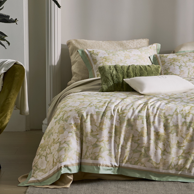 甄选优质天丝棉面料。面料触感柔滑若缎,透气贴肤,给予一夜安眠。精致印花设计,图案生动时尚,为卧室注入艺术美感与灵动气息,轻松搭配各式卧房风格。细节处匠心缝制,为您带来奢华而舒适的居家睡眠体验。