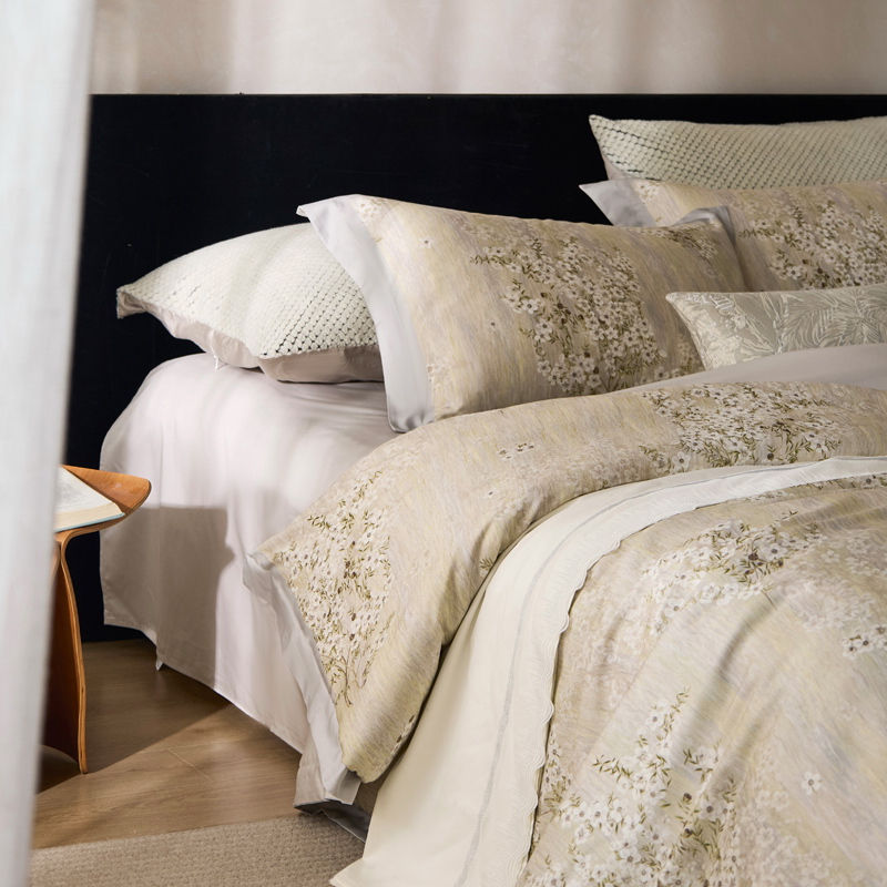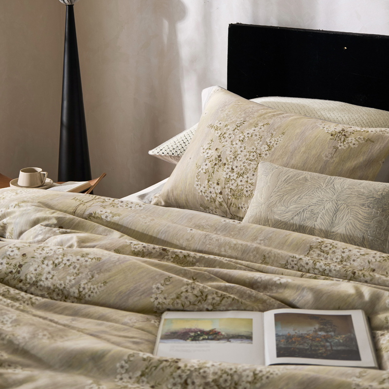 甄选优质天丝棉面料。面料触感柔滑若缎,透气贴肤,给予一夜安眠。精致印花设计,图案生动时尚,为卧室注入艺术美感与灵动气息,轻松搭配各式卧房风格。细节处匠心缝制,为您带来奢华而舒适的居家睡眠体验。