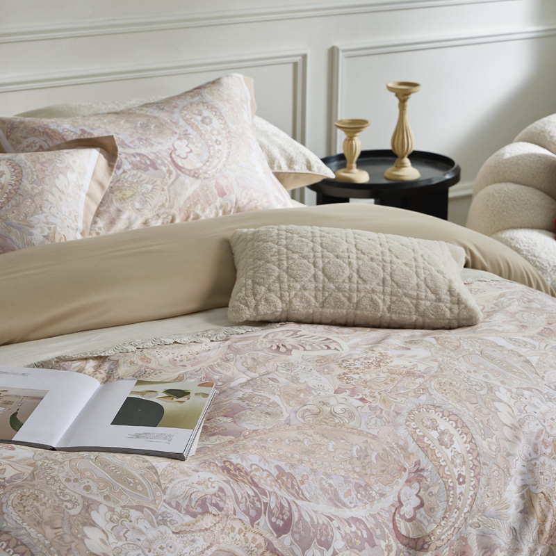 甄选优质天丝棉面料。面料触感柔滑若缎,透气贴肤,给予一夜安眠。精致印花设计,图案生动时尚,为卧室注入艺术美感与灵动气息,轻松搭配各式卧房风格。细节处匠心缝制,为您带来奢华而舒适的居家睡眠体验。