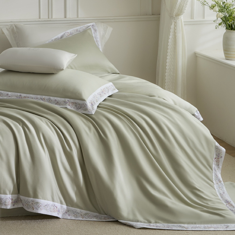 甄选优质天丝棉面料。面料触感柔滑若缎,透气贴肤,给予一夜安眠。精致印花设计,图案生动时尚,为卧室注入艺术美感与灵动气息,轻松搭配各式卧房风格。细节处匠心缝制,为您带来奢华而舒适的居家睡眠体验。