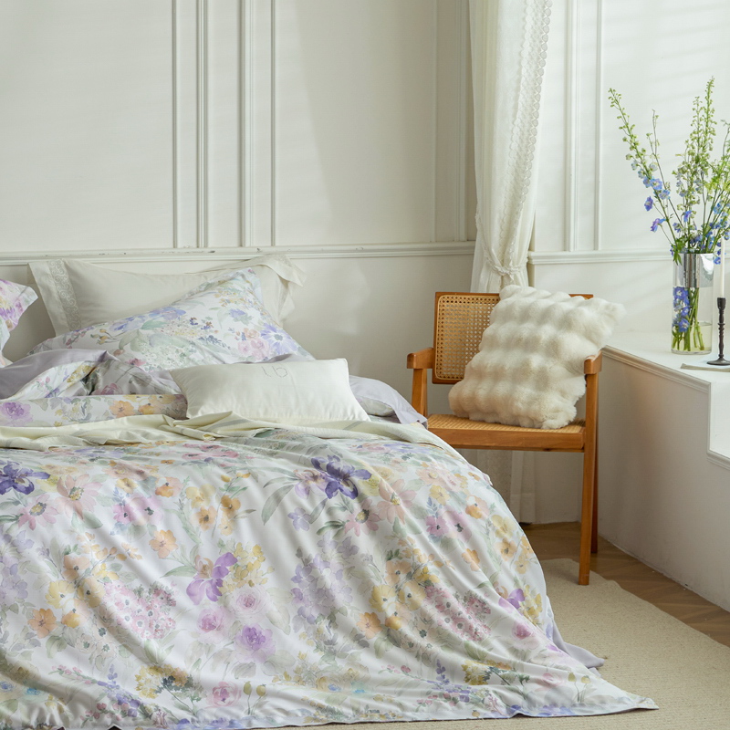 甄选优质天丝棉面料。面料触感柔滑若缎,透气贴肤,给予一夜安眠。精致印花设计,图案生动时尚,为卧室注入艺术美感与灵动气息,轻松搭配各式卧房风格。细节处匠心缝制,为您带来奢华而舒适的居家睡眠体验。