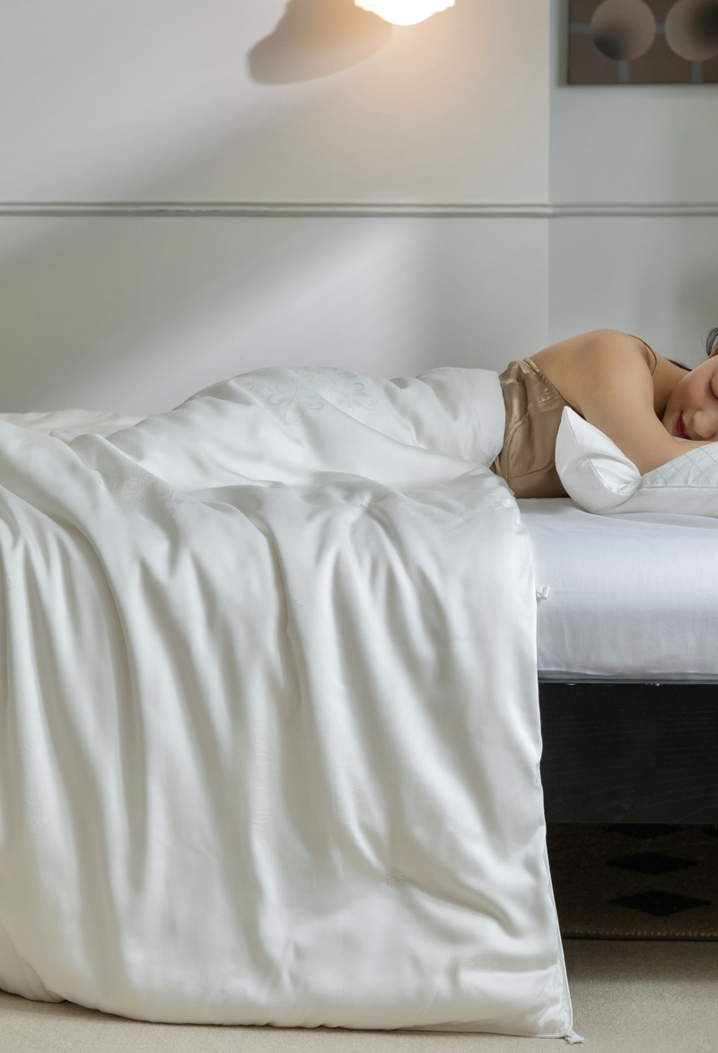 精选优质双宫茧桑蚕丝,采用60甄舒棉大提花面料,触感柔滑亲肤。蚕丝纤维长而强韧,蓬松透气,贴合身体曲线,四季皆宜。手工定点绗缝工艺确保填充均匀不易移位,匠心打造轻盈无压的深度睡眠体验,为您带来云端般柔软温暖的高品质享受。只做好蚕丝!高品质桑蚕丝蚕丝!既然选择买蚕丝被了,就一定要选择好蚕丝,使用寿命长,体验感也不一样。