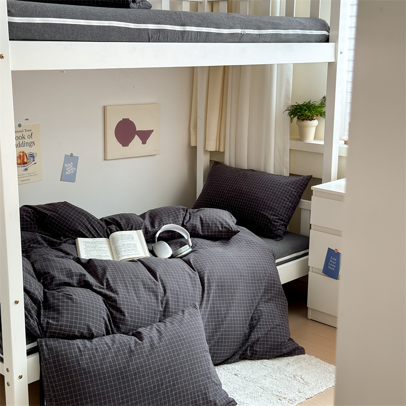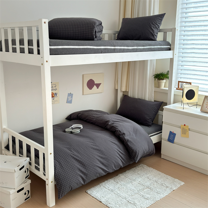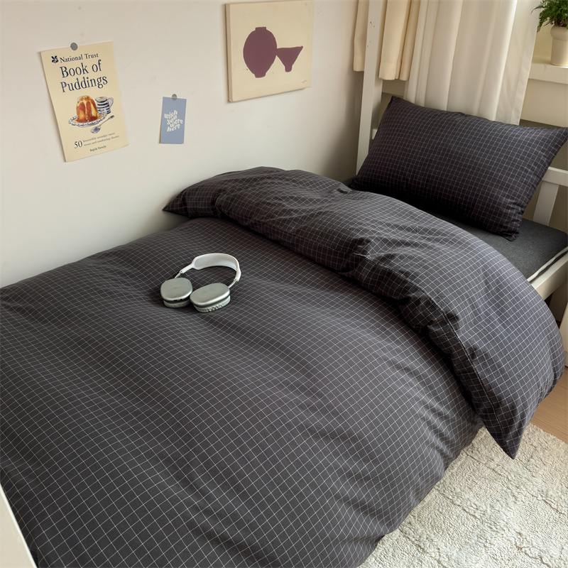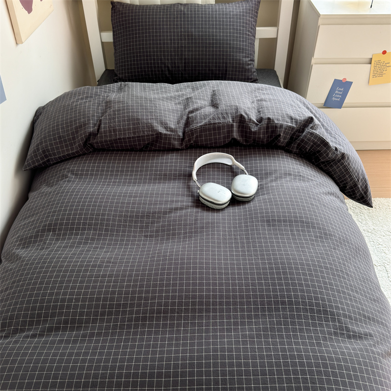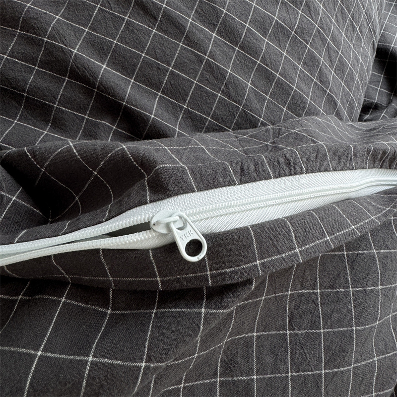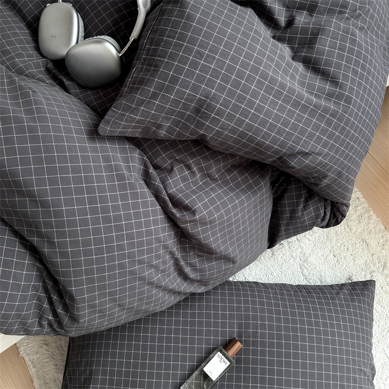 采用优质棉纱,通过色织工艺织造,面料经过特殊水洗处理,触感柔软蓬松,带有自然做旧肌理,越洗越贴肤。床品透气吸湿,四季适用。经典格纹/条纹设计简约百搭,轻微褶皱感营造慵懒氛围。