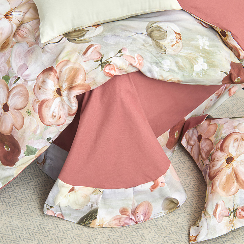 工艺:床单荷叶吊边(AB版随机),枕套宽边月牙绣,预缩全工艺