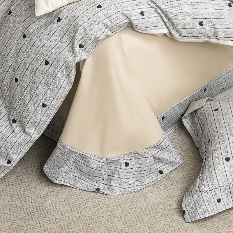 工艺:床单荷叶吊边(AB版随机),枕套宽边月牙绣,预缩全工艺
