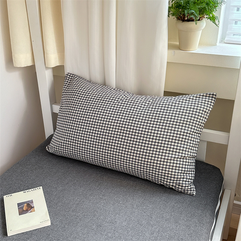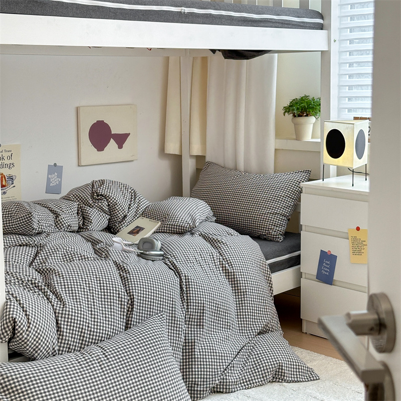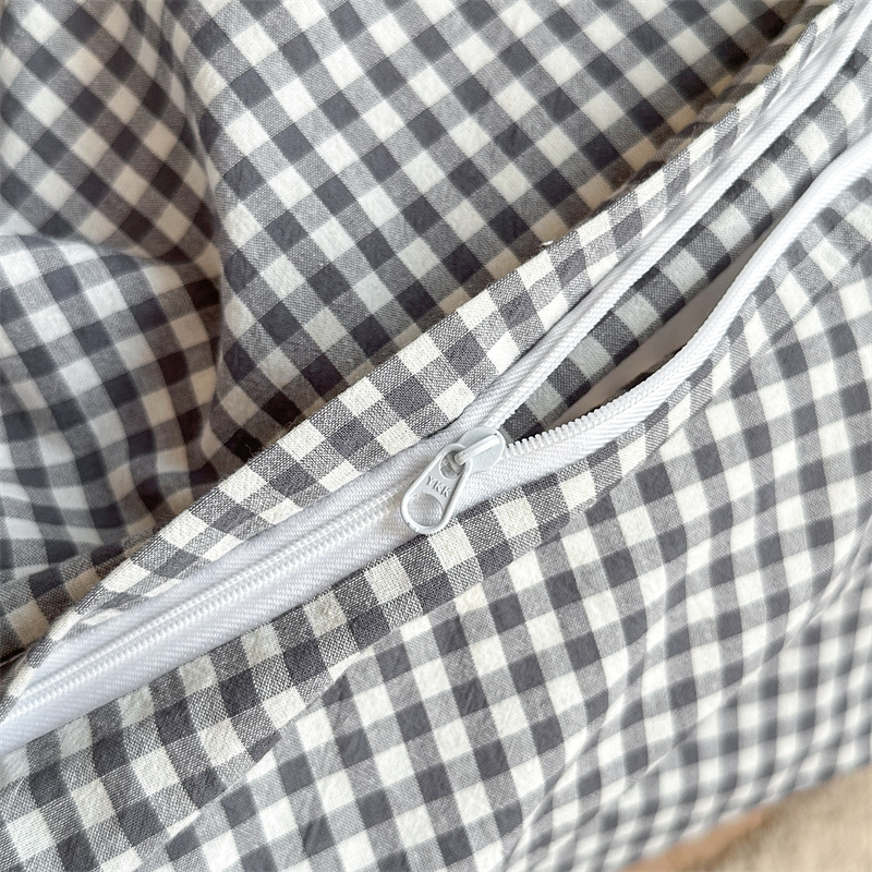 采用优质棉纱,通过色织工艺织造,面料经过特殊水洗处理,触感柔软蓬松,带有自然做旧肌理,越洗越贴肤。床品透气吸湿,四季适用。经典格纹/条纹设计简约百搭,轻微褶皱感营造慵懒氛围。