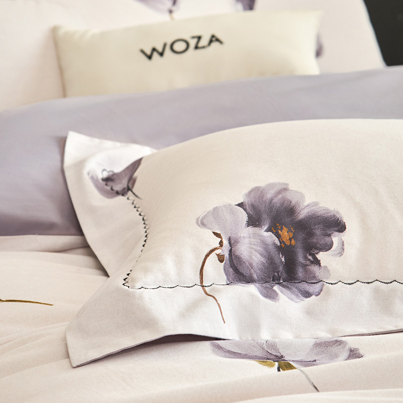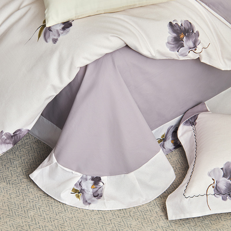 工艺:床单荷叶吊边(AB版随机),枕套宽边月牙绣,预缩全工艺
