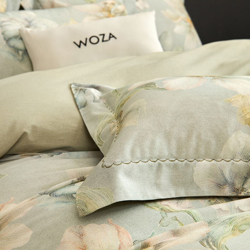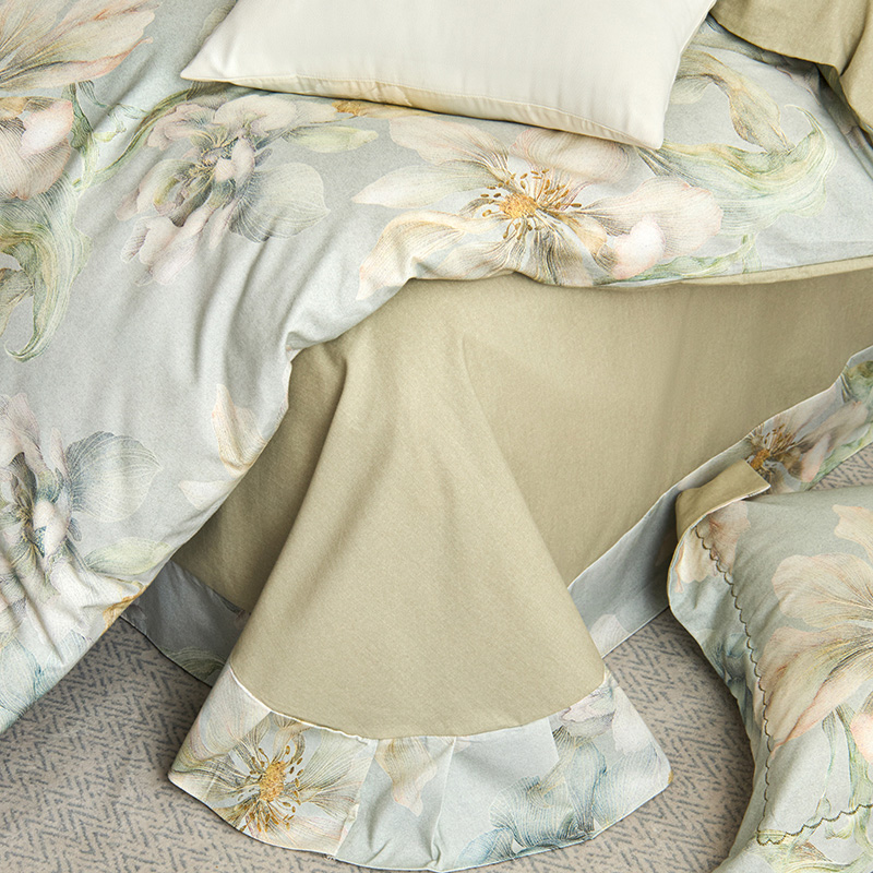 工艺:床单荷叶吊边(AB版随机),枕套宽边月牙绣,预缩全工艺