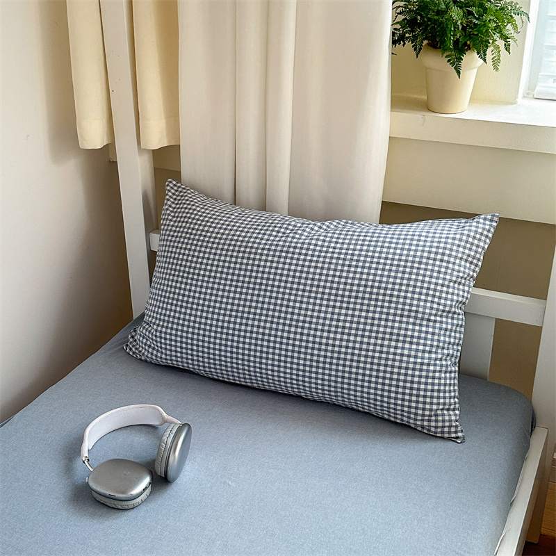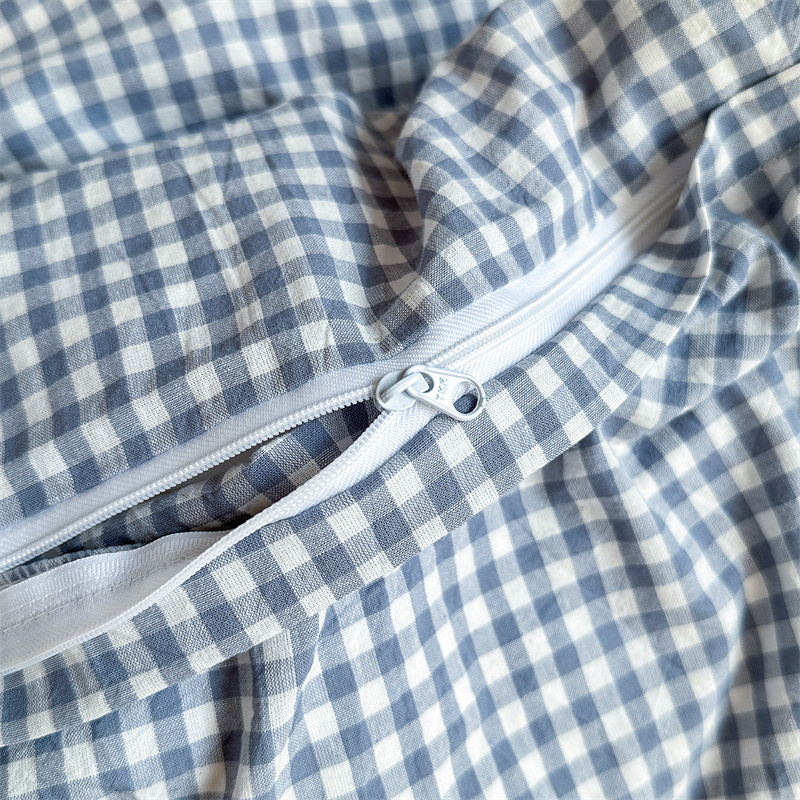 采用优质棉纱,通过色织工艺织造,面料经过特殊水洗处理,触感柔软蓬松,带有自然做旧肌理,越洗越贴肤。床品透气吸湿,四季适用。经典格纹/条纹设计简约百搭,轻微褶皱感营造慵懒氛围。