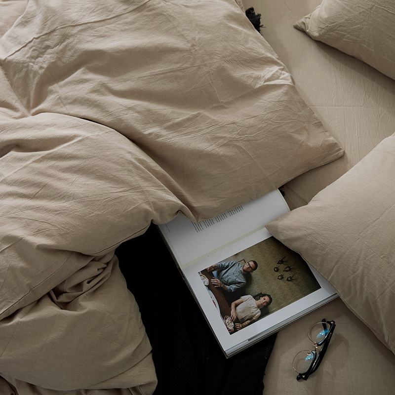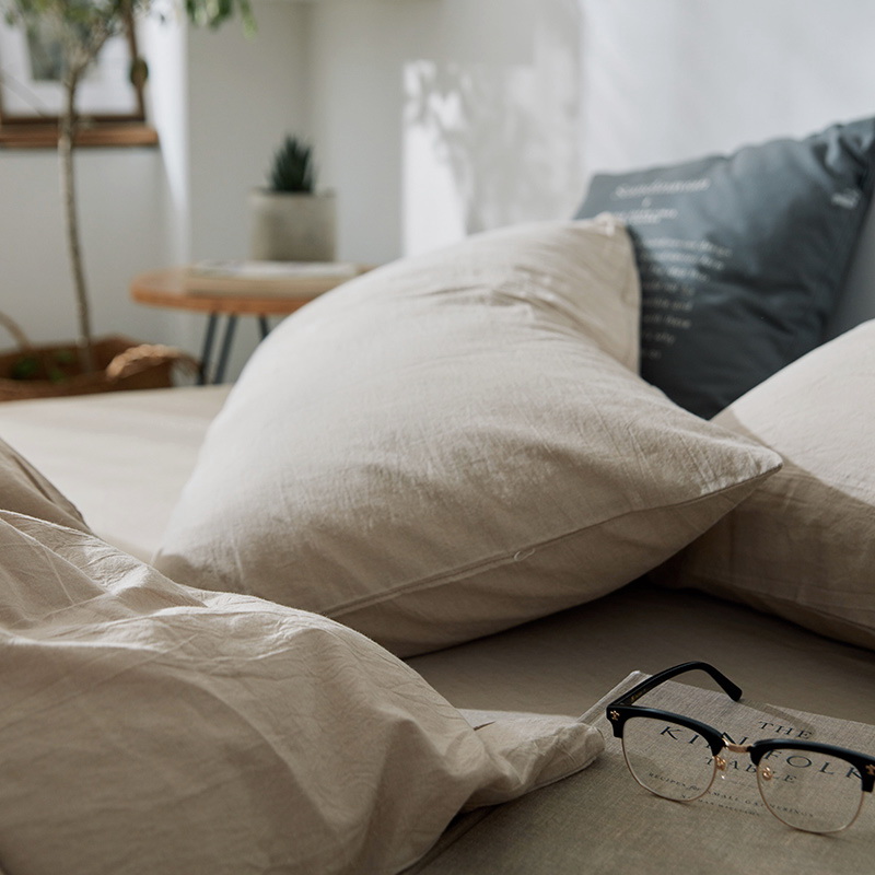 以极简美学诠释生活本真,采用优质全棉,通过色织水洗工艺打造柔软贴肤、自然褶皱的慵懒质感。低饱和中性色调温柔适配多种空间,活性印染技术。越洗越软的特性伴随时光沉淀,赋予睡眠温柔而长久的陪伴。