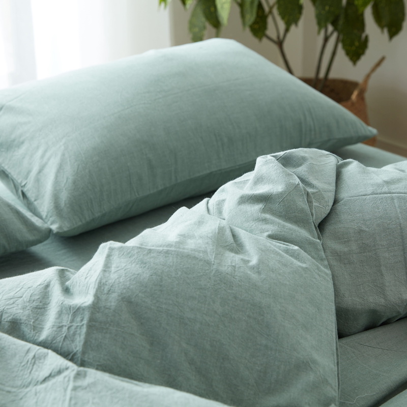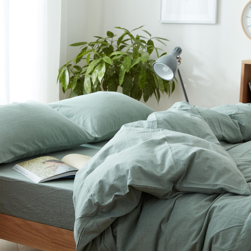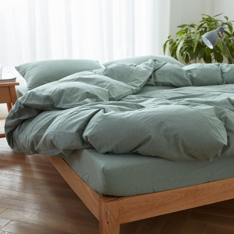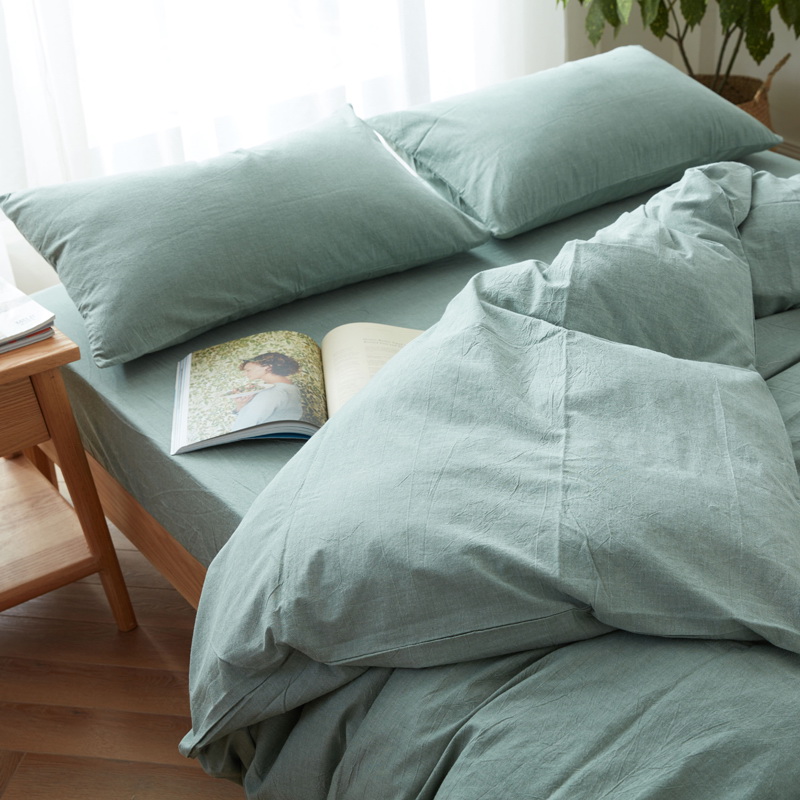 以极简美学诠释生活本真,采用优质全棉,通过色织水洗工艺打造柔软贴肤、自然褶皱的慵懒质感。低饱和中性色调温柔适配多种空间,活性印染技术。越洗越软的特性伴随时光沉淀,赋予睡眠温柔而长久的陪伴。