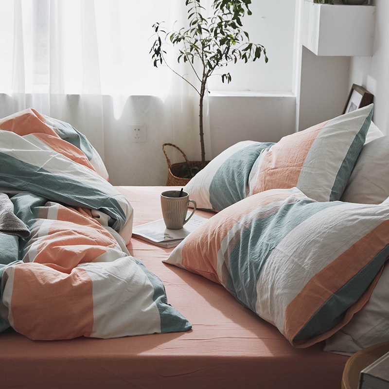 日式全棉色织水洗棉套件_条纹系列