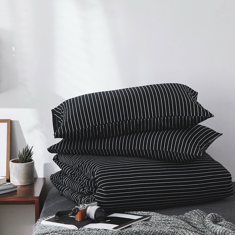 以极简美学诠释生活本真,采用优质全棉,通过色织水洗工艺打造柔软贴肤、自然褶皱的慵懒质感。低饱和中性色调温柔适配多种空间,活性印染技术。越洗越软的特性伴随时光沉淀,赋予睡眠温柔而长久的陪伴。