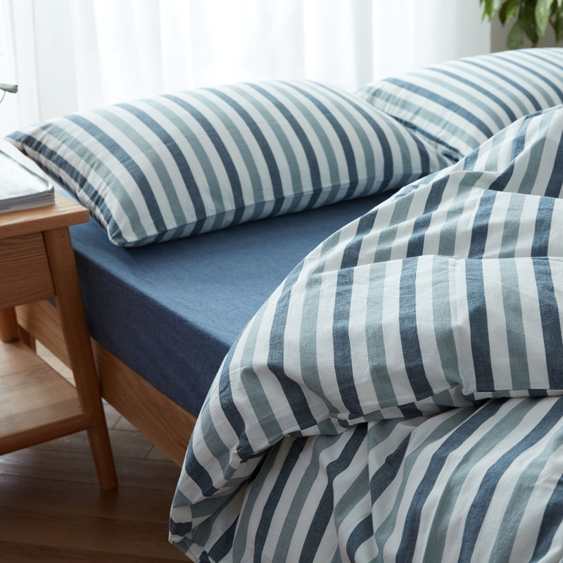 日式全棉色织水洗棉套件_条纹系列