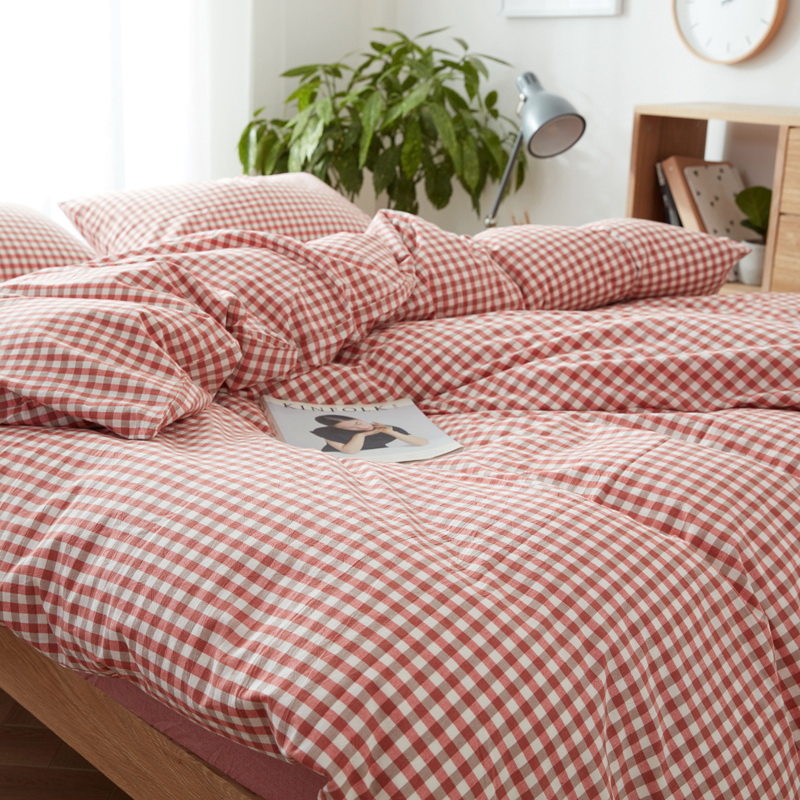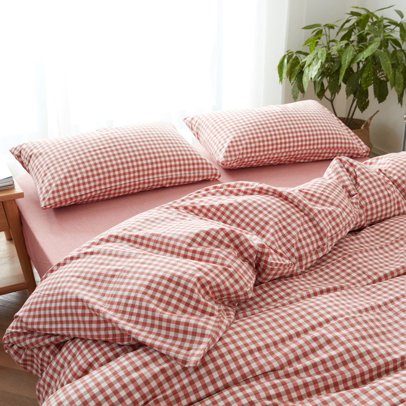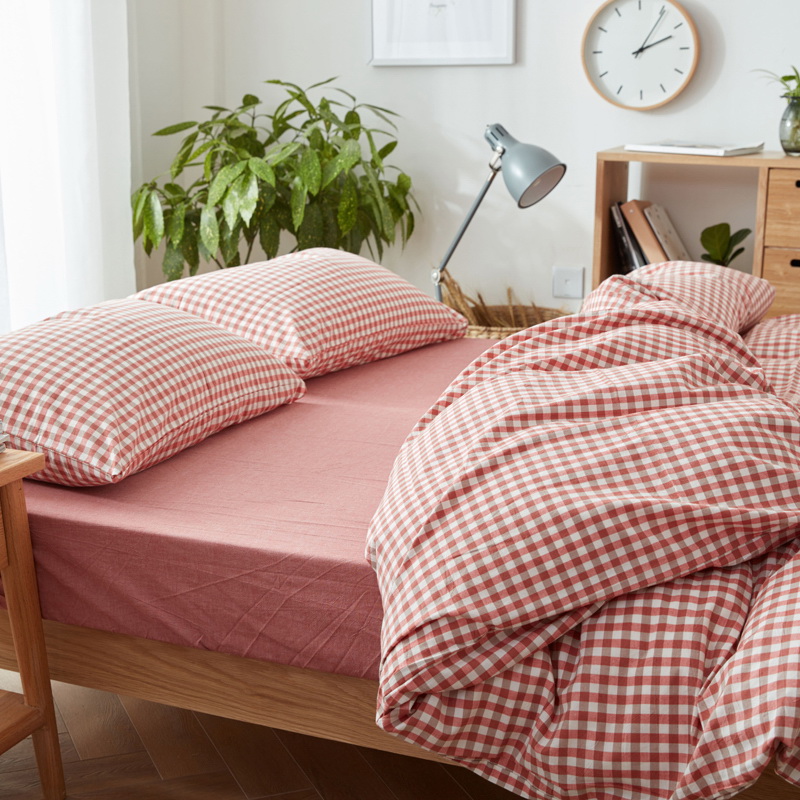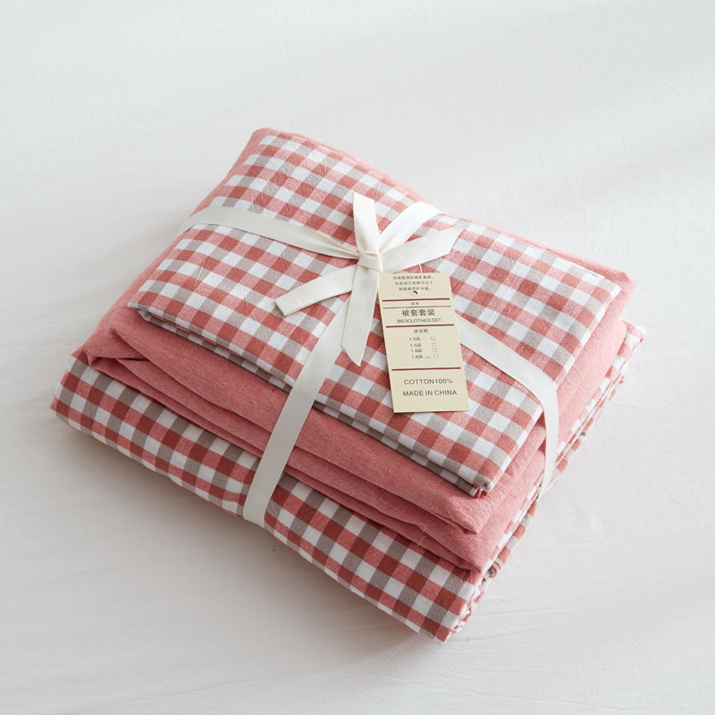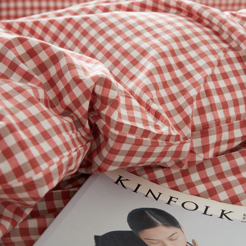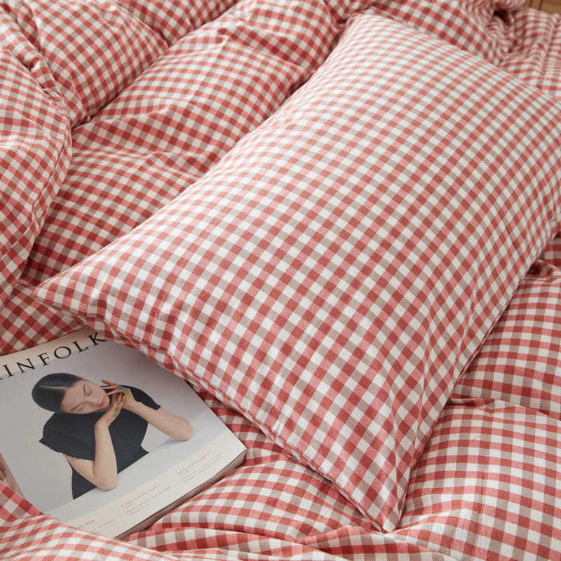 日式全棉色织水洗棉套件_格子系列