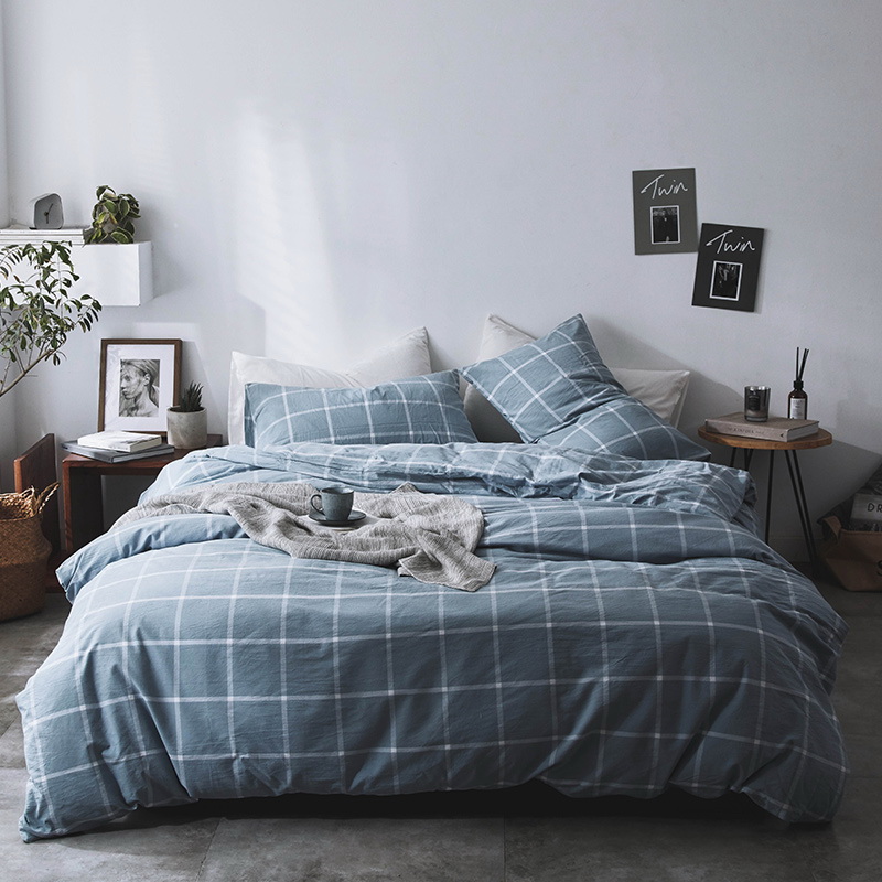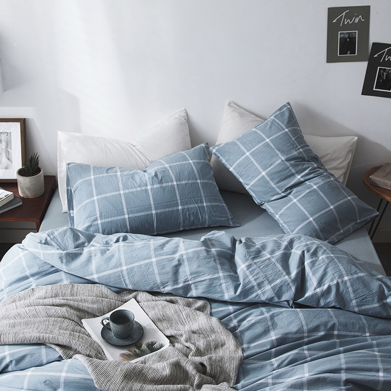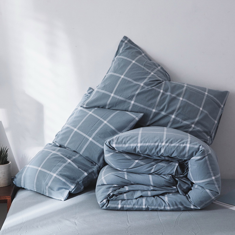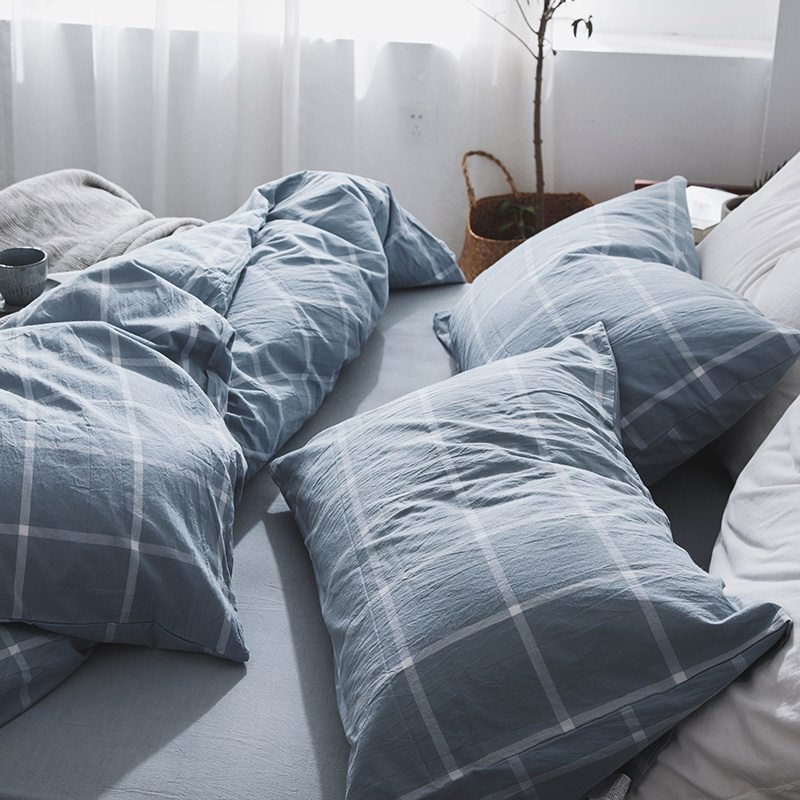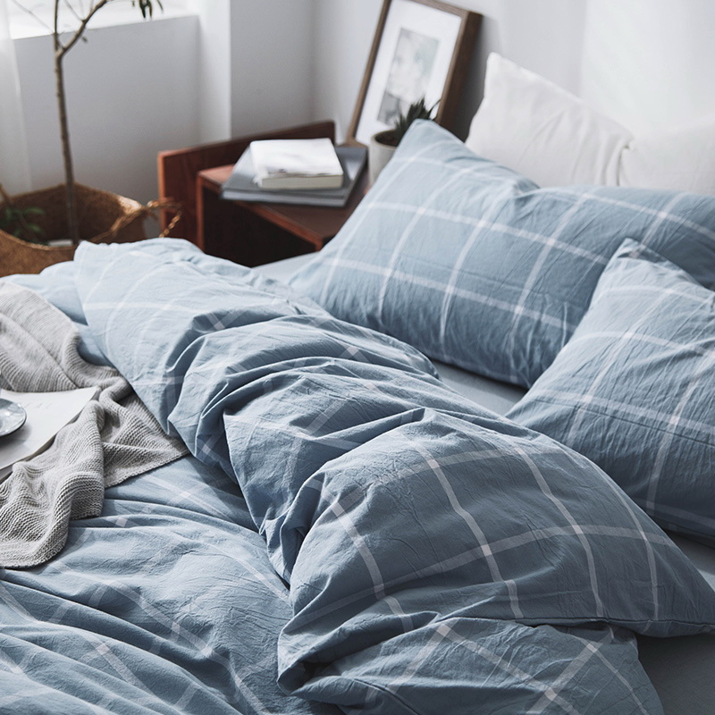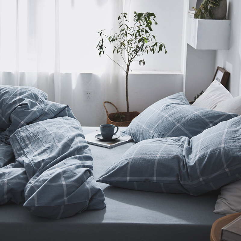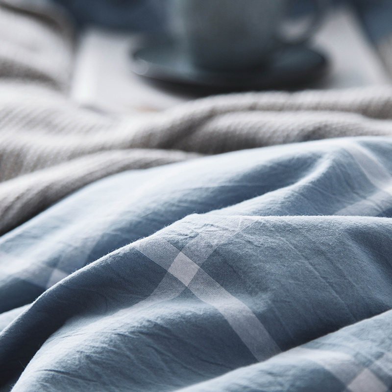 日式全棉色织水洗棉套件_格子系列