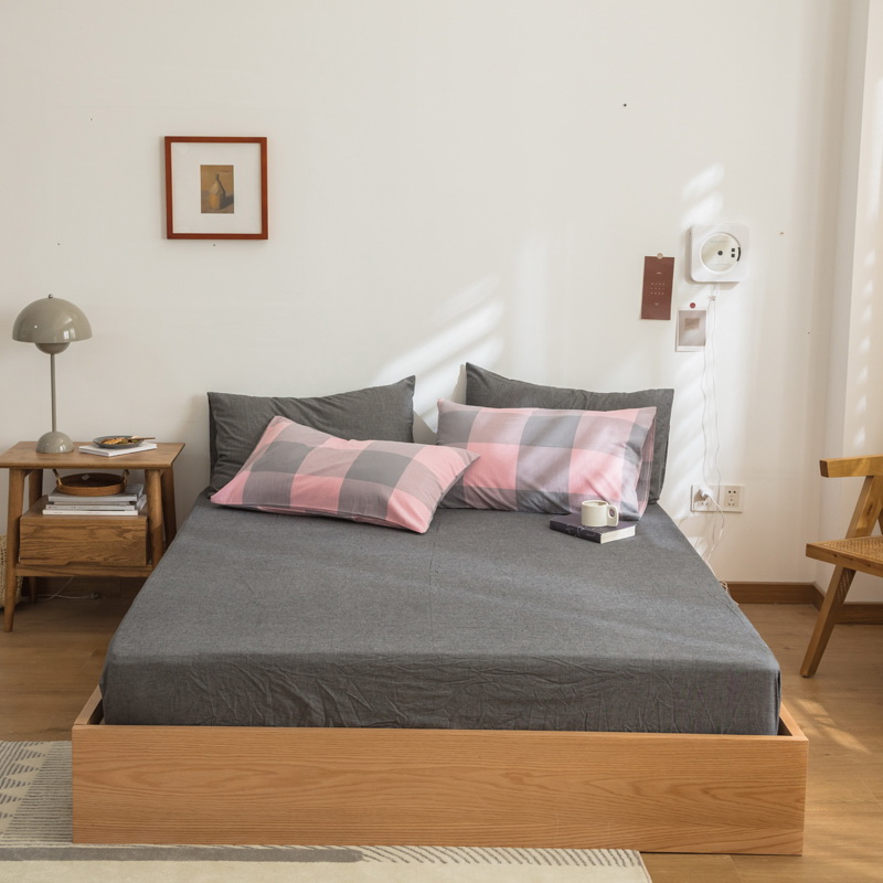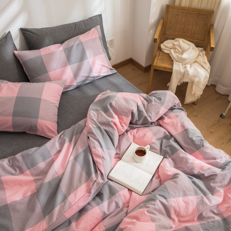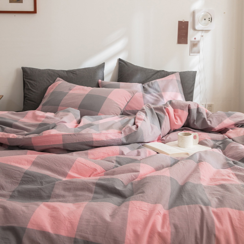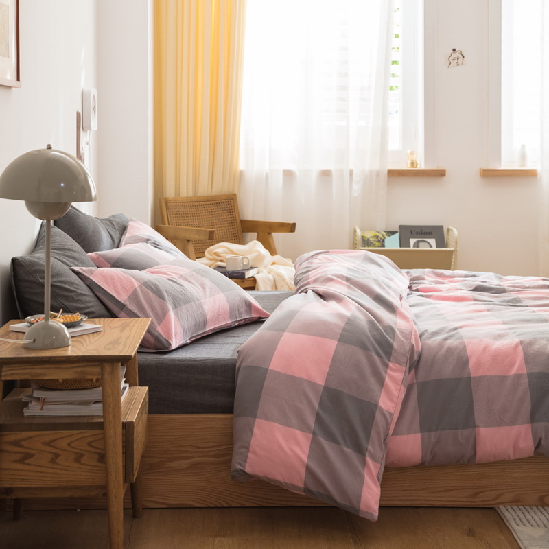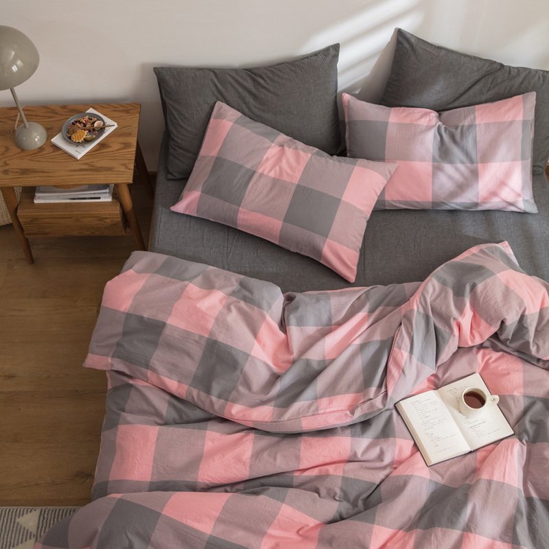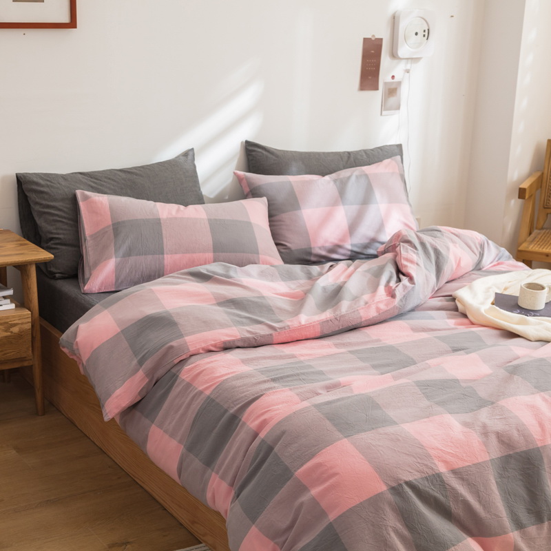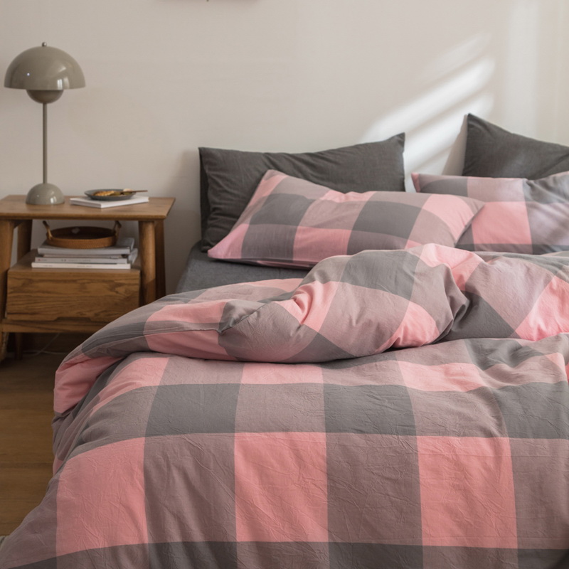 日式全棉色织水洗棉套件_格子系列