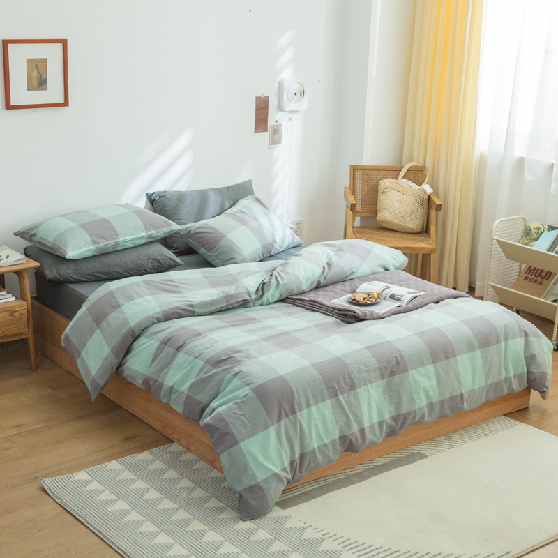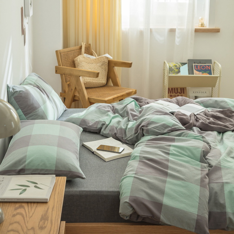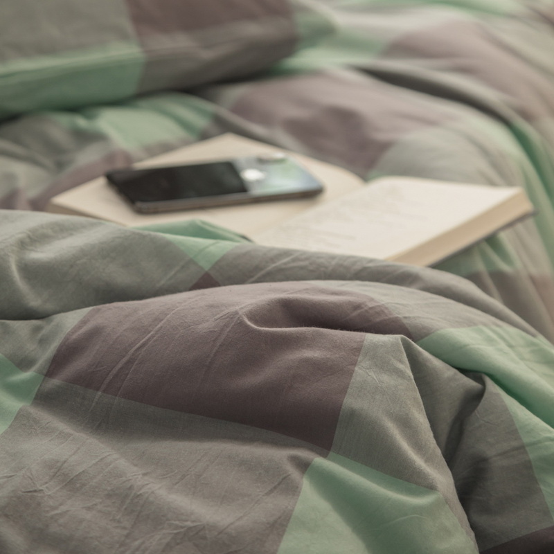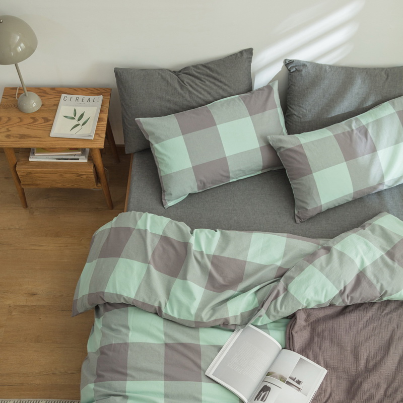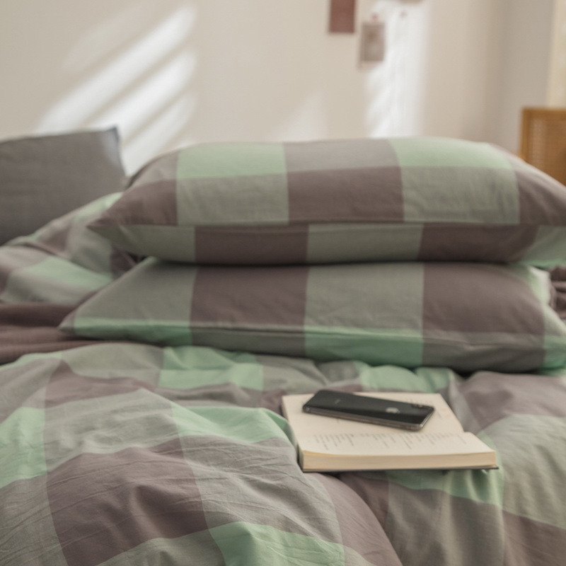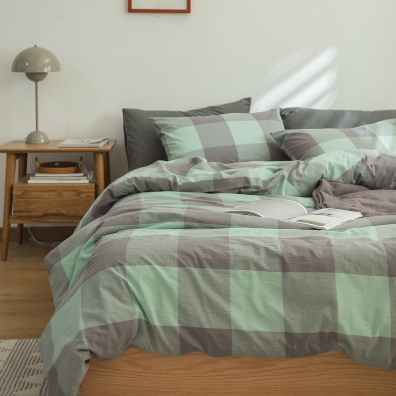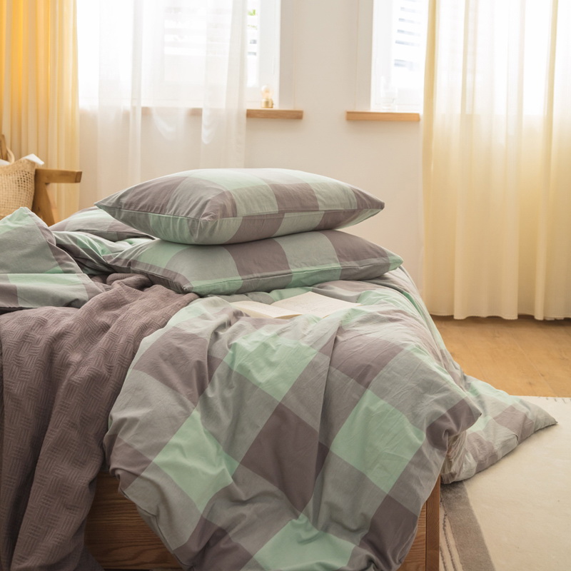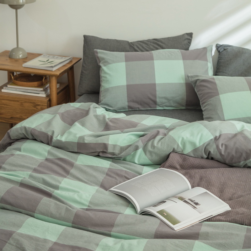日式全棉色织水洗棉套件_格子系列