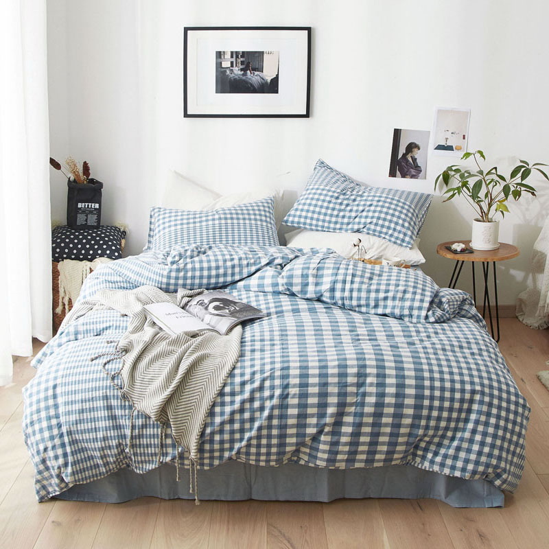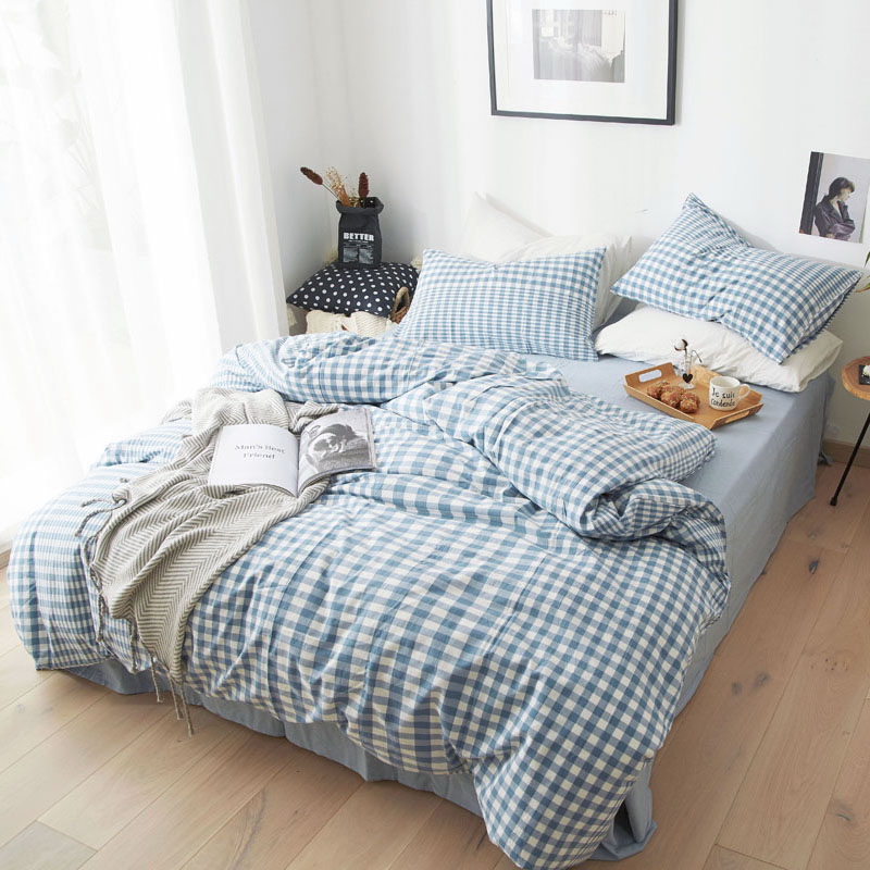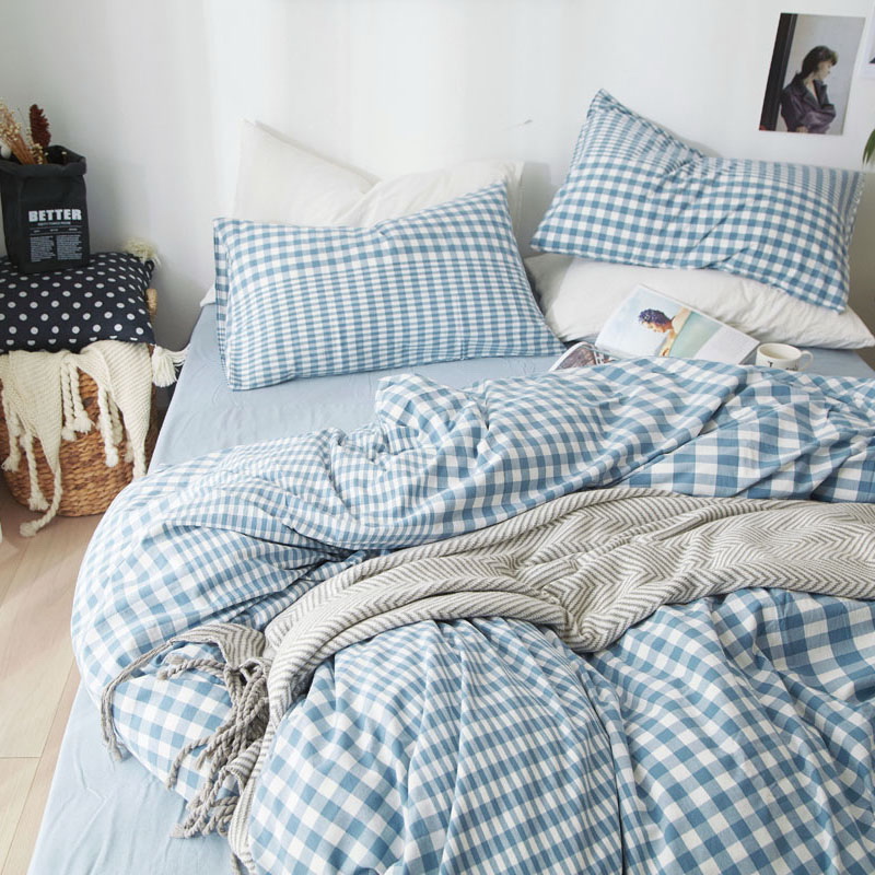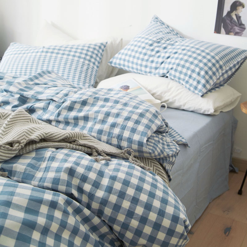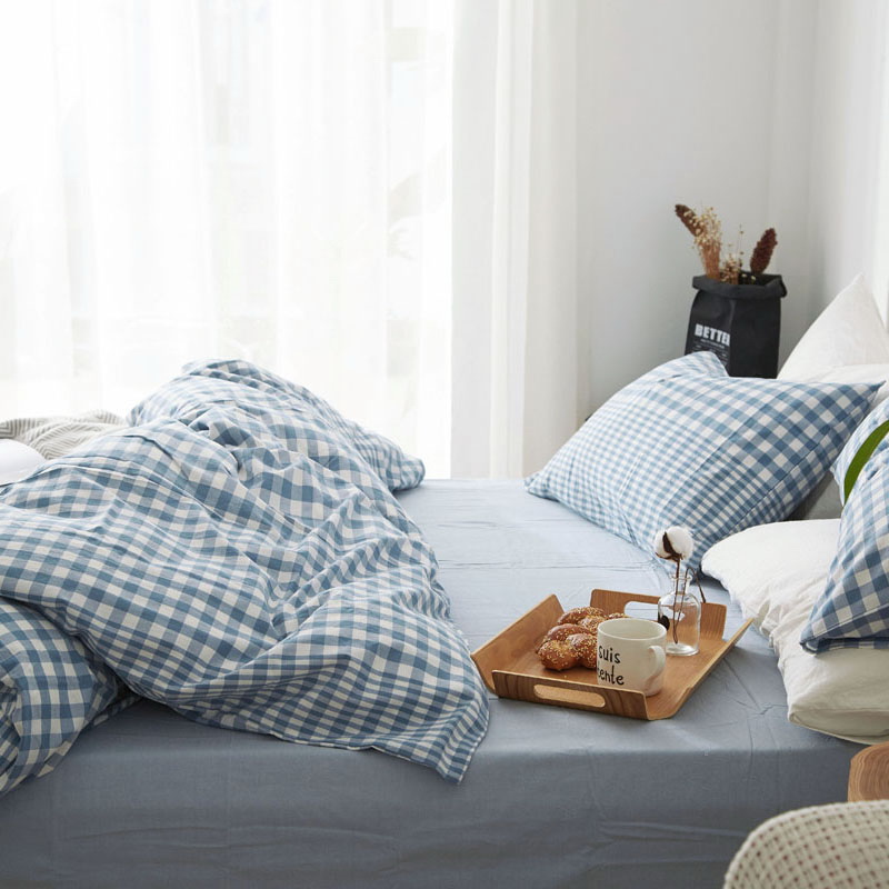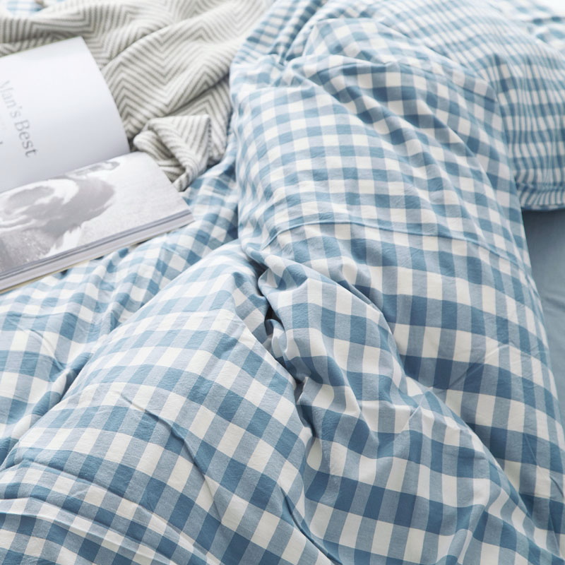 日式全棉色织水洗棉套件_格子系列
