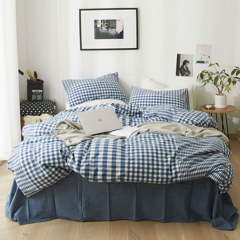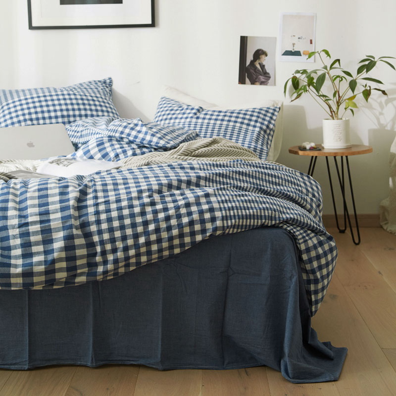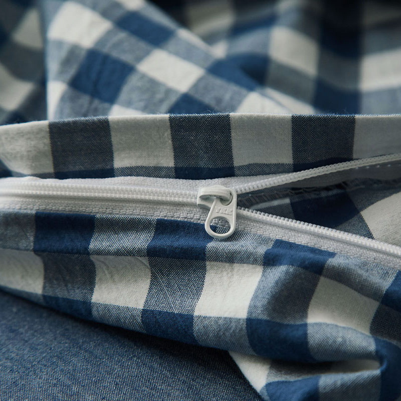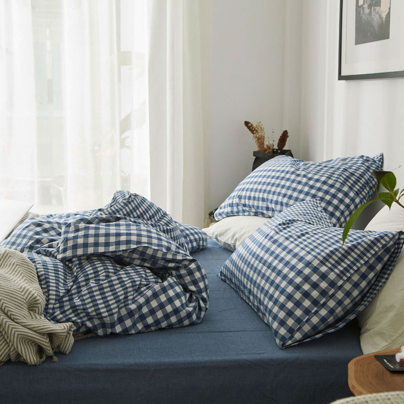 以极简美学诠释生活本真,采用优质全棉,通过色织水洗工艺打造柔软贴肤、自然褶皱的慵懒质感。低饱和中性色调温柔适配多种空间,活性印染技术。越洗越软的特性伴随时光沉淀,赋予睡眠温柔而长久的陪伴。