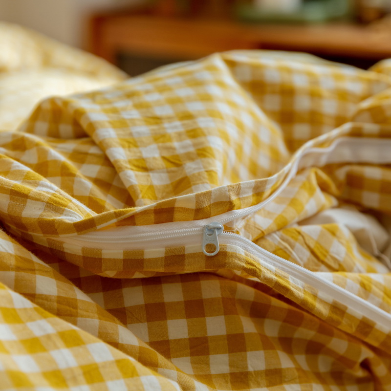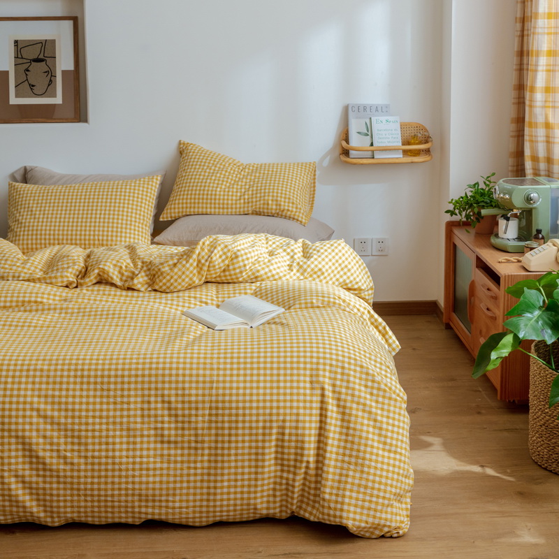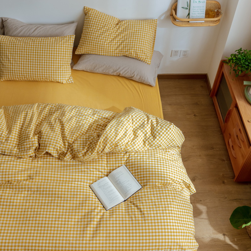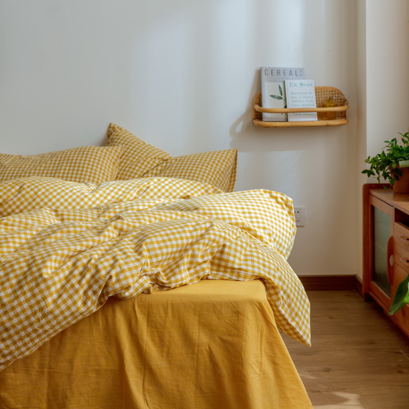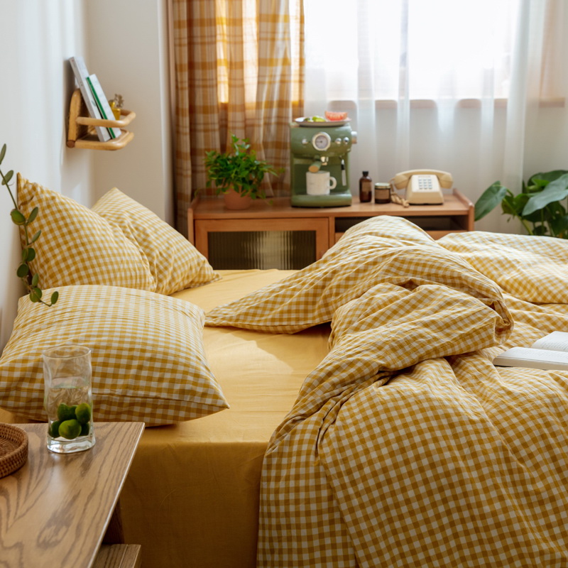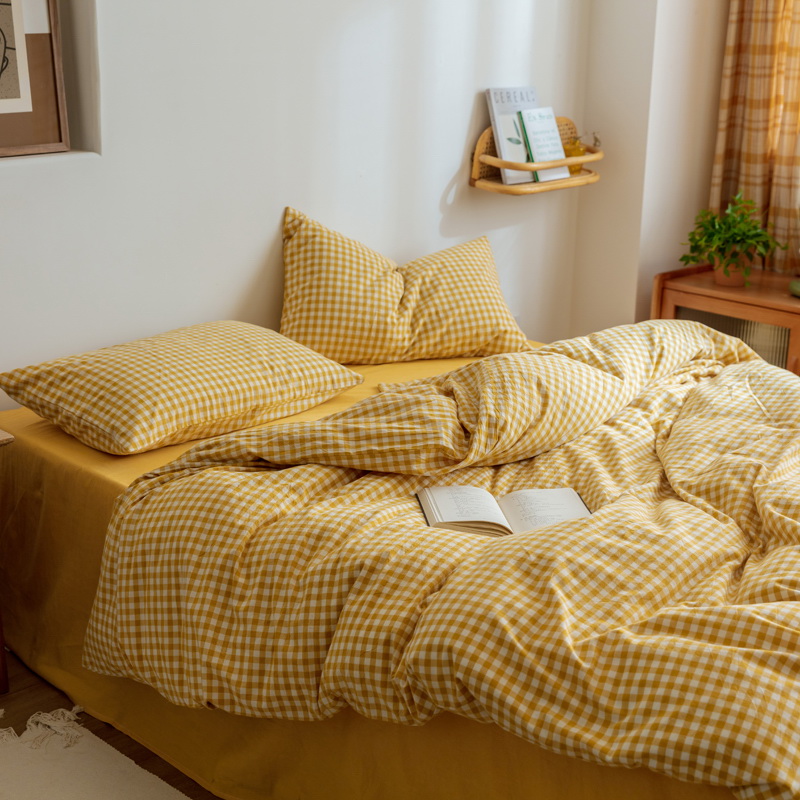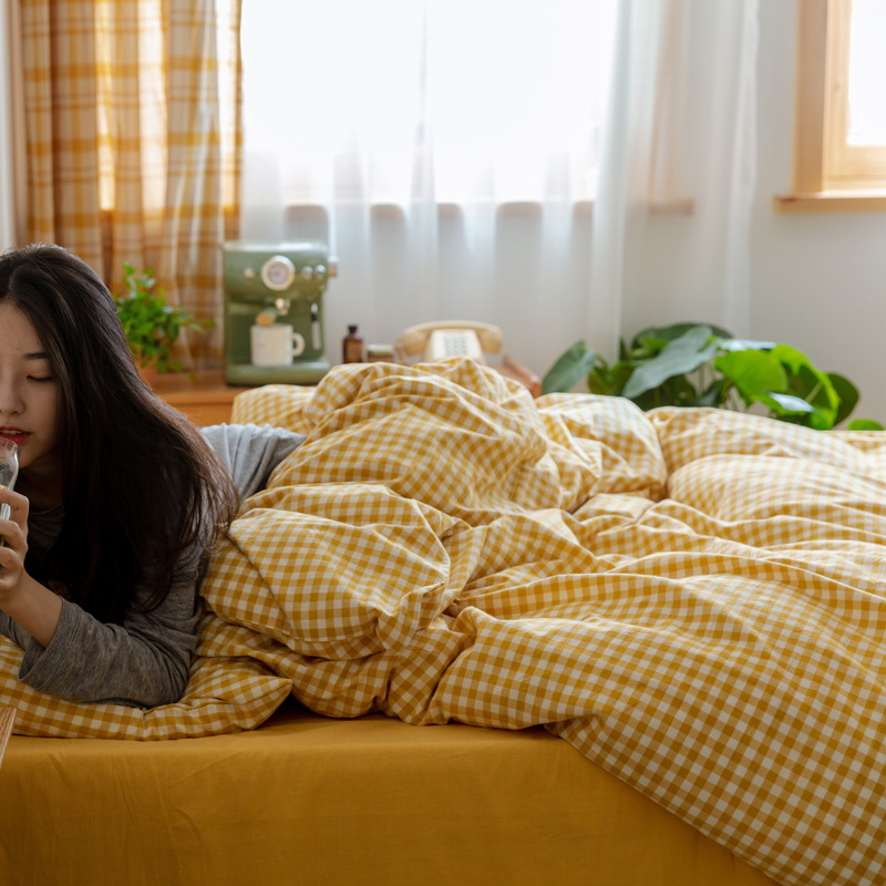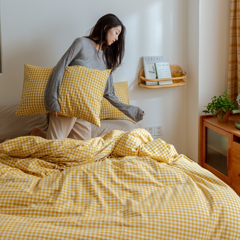 以极简美学诠释生活本真,采用优质全棉,通过色织水洗工艺打造柔软贴肤、自然褶皱的慵懒质感。低饱和中性色调温柔适配多种空间,活性印染技术。越洗越软的特性伴随时光沉淀,赋予睡眠温柔而长久的陪伴。