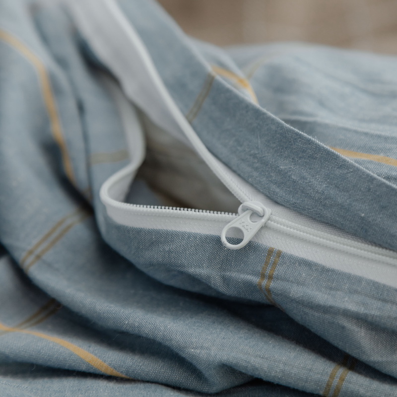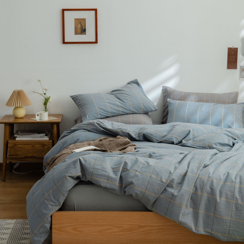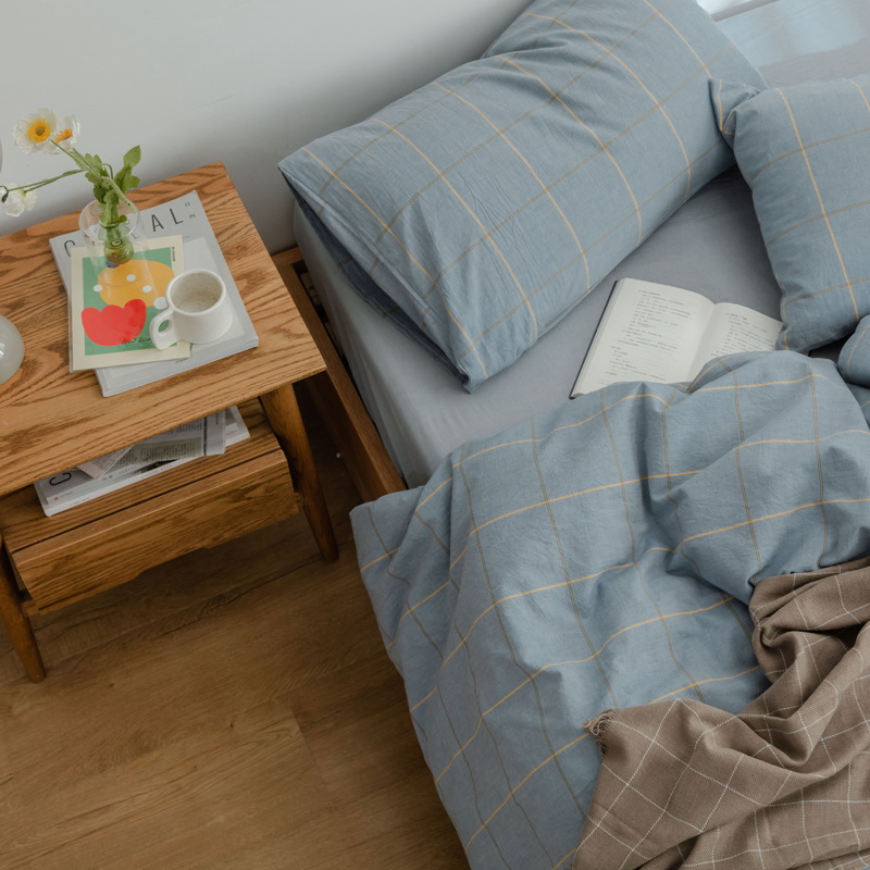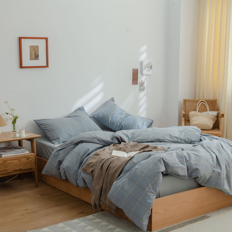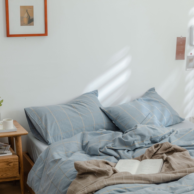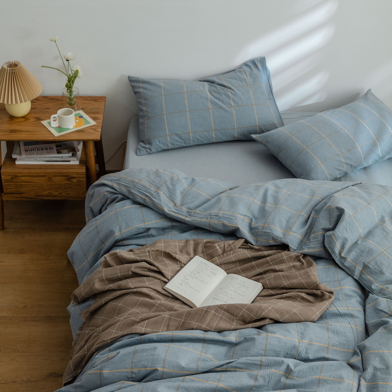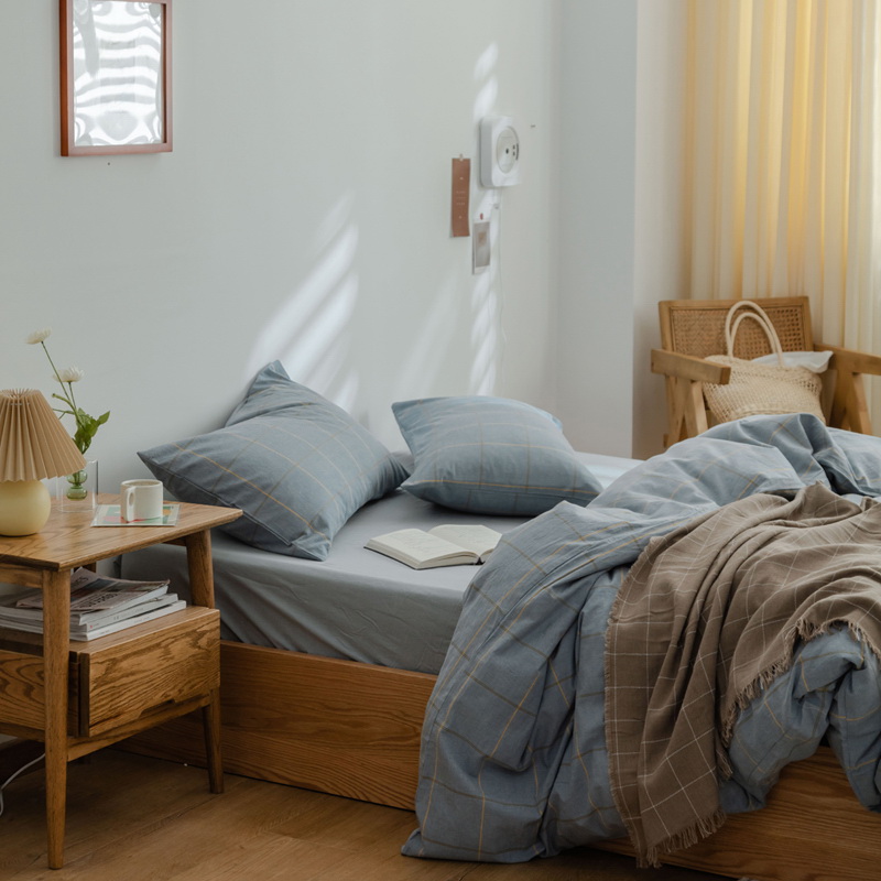 以极简美学诠释生活本真,采用优质全棉,通过色织水洗工艺打造柔软贴肤、自然褶皱的慵懒质感。低饱和中性色调温柔适配多种空间,活性印染技术。越洗越软的特性伴随时光沉淀,赋予睡眠温柔而长久的陪伴。