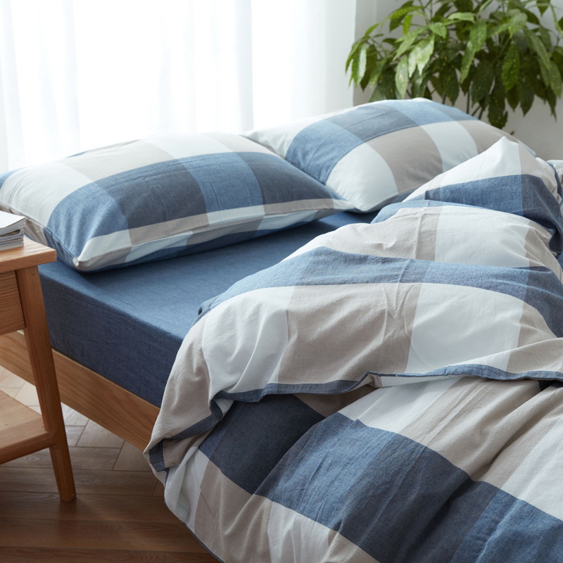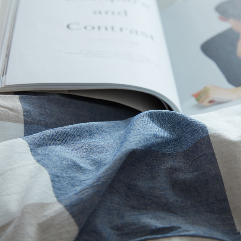 以极简美学诠释生活本真,采用优质全棉,通过色织水洗工艺打造柔软贴肤、自然褶皱的慵懒质感。低饱和中性色调温柔适配多种空间,活性印染技术。越洗越软的特性伴随时光沉淀,赋予睡眠温柔而长久的陪伴。