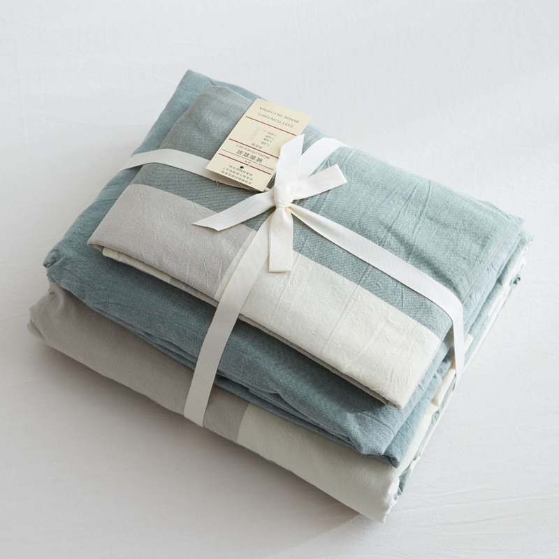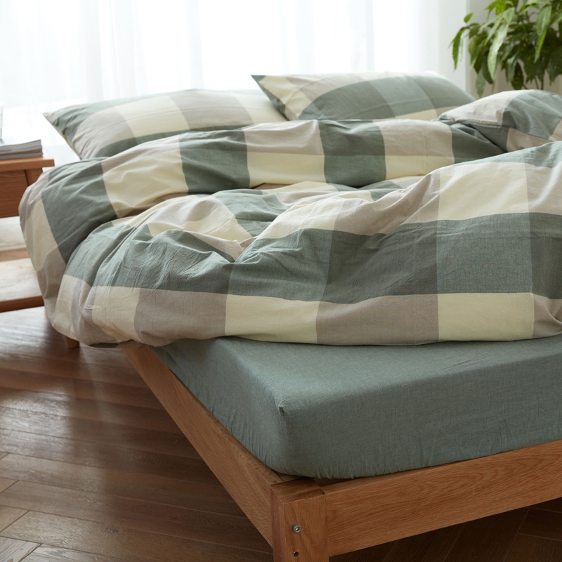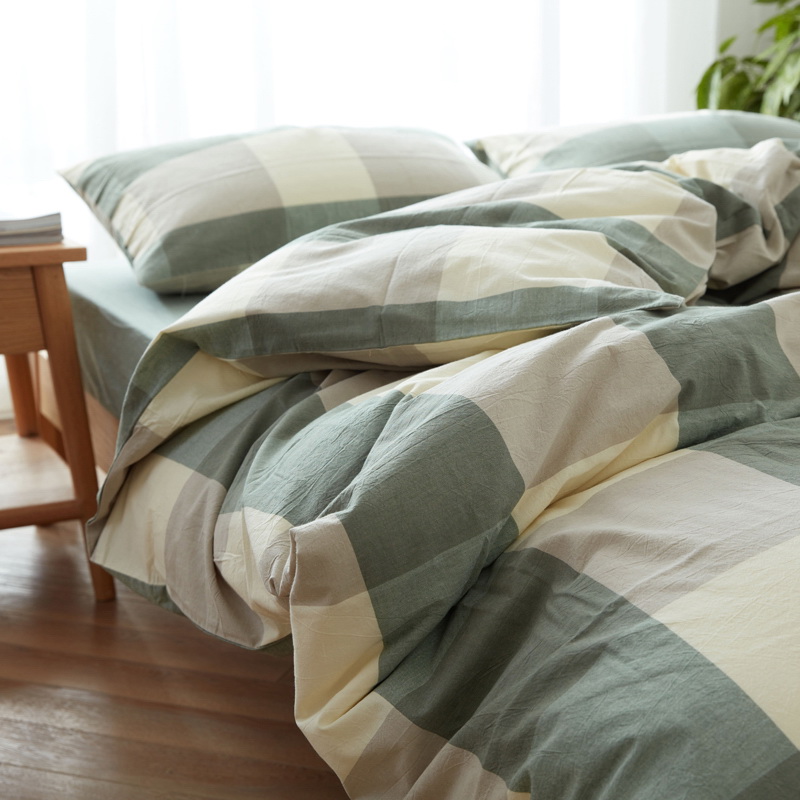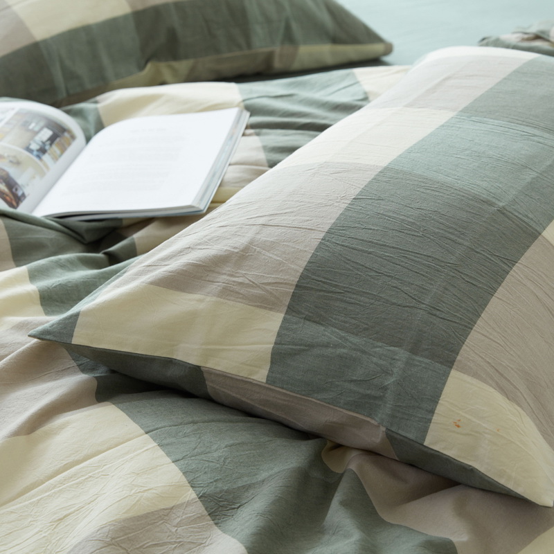 以极简美学诠释生活本真,采用优质全棉,通过色织水洗工艺打造柔软贴肤、自然褶皱的慵懒质感。低饱和中性色调温柔适配多种空间,活性印染技术。越洗越软的特性伴随时光沉淀,赋予睡眠温柔而长久的陪伴。